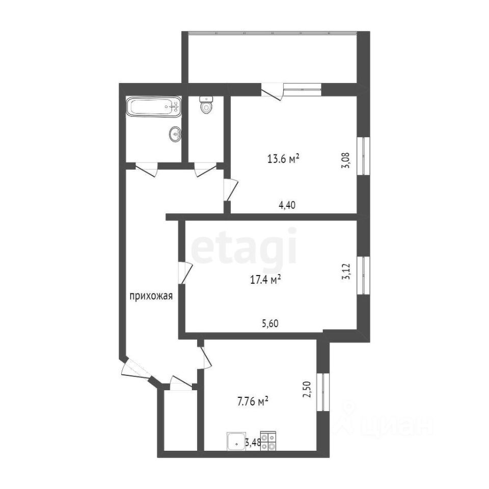 Двухкомнатная квартира площадью 56,1 м2 расположена на 5 этаже панельного дома, выполнен хороший косметический ремонт в светлых тонах, простоные две комнаты, кухня, утеплённая лоджия, холл, санузел раздельный.