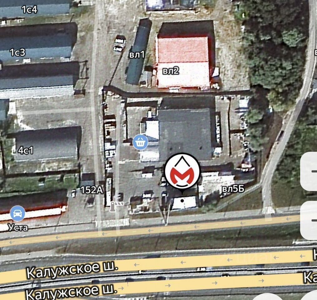 На Калужском шоссе, заезд с обоих направлений магистрали через разворот прямо у объекта.
