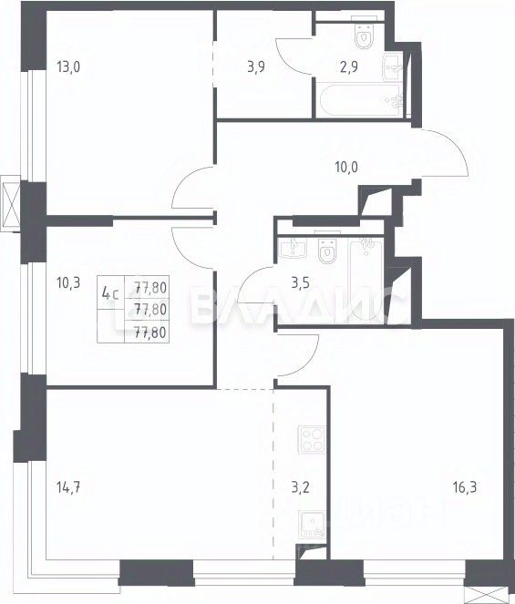Код объекта: 2014026. В продаже 3 ком квартира с чистовой отделкой от застройщика общей площадью 77,4 м2 на 13 этаже из 14. Отделка