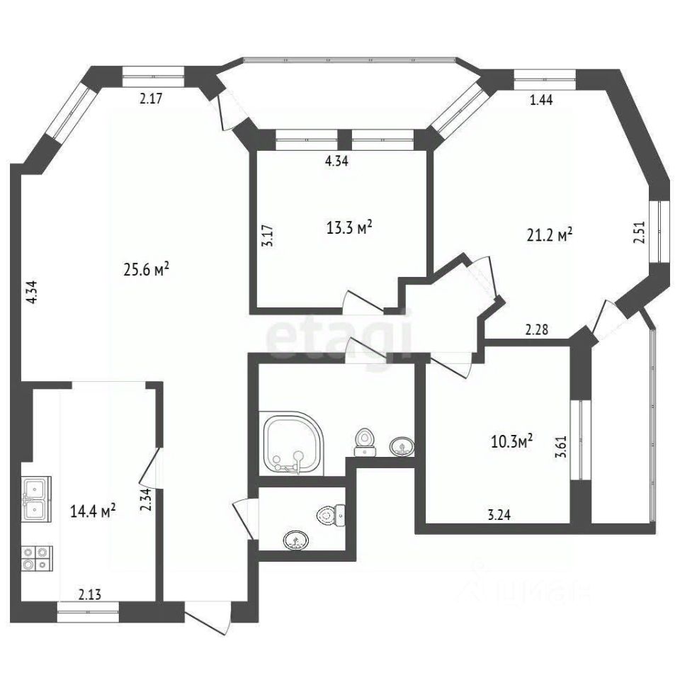 Объект предлагает готовое и продуманное пространство для жизни: большая кухня-гостиная 53 кв. м, три изолированные спальни и два санузла. Высота потолков 3,2 метра и панорамные окна наполняют помещения светом и ощущением простора.