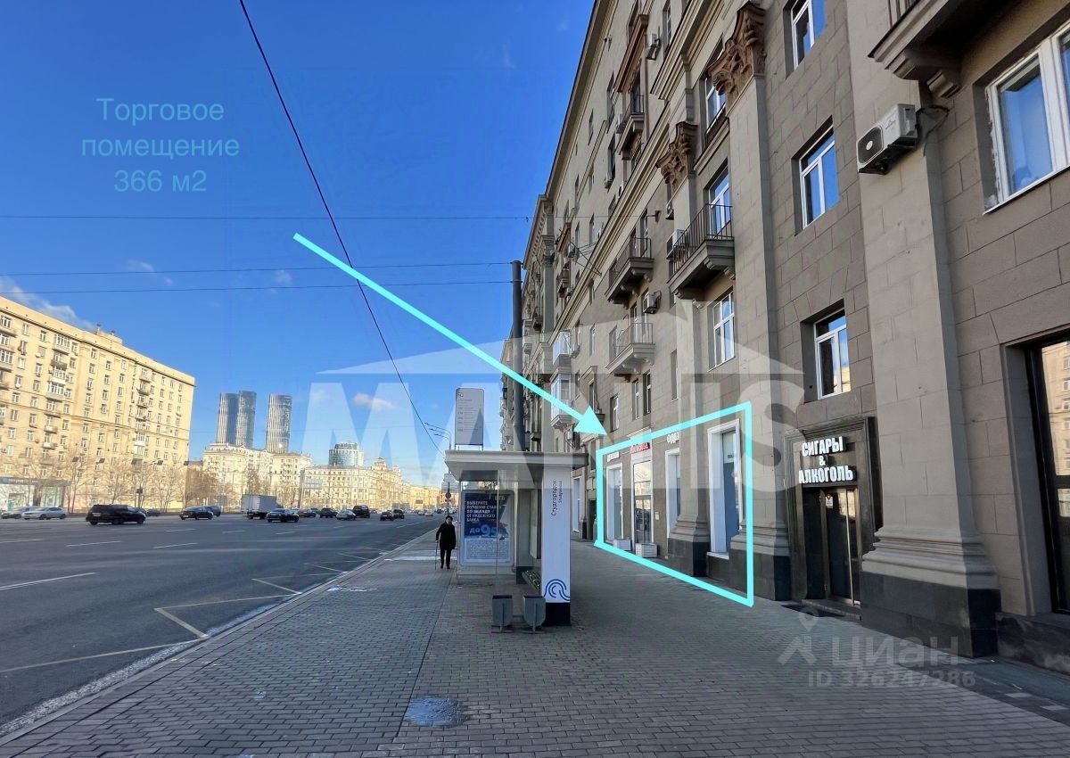Собственник предлагает к продаже торговое помещение с большими витринами и входом с первой линии на главной магистрали столицы Кутузовском проспекте.