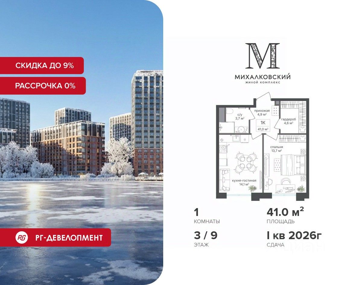Скидка 9% при покупке квартиры! Цена указана с учетом максимального размера скидки.