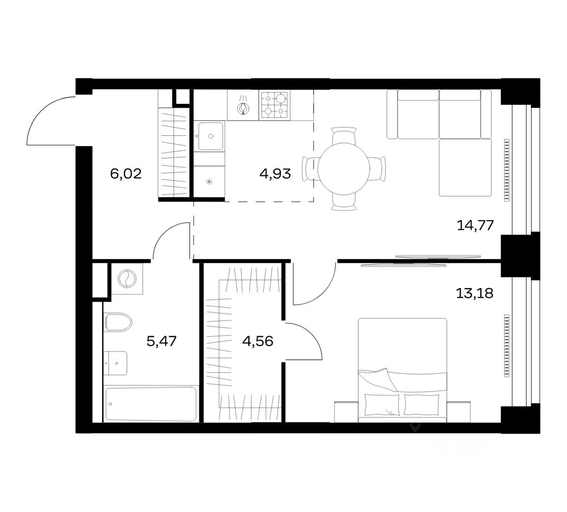 Строим кварталы для жизни с заботой о будущем. Предлагается 1-комнатная квартира премиум-класса площадью 48,93 кв.м в корпусе 1 на 2-м этаже, в жилом комплексе ''NOVA''.