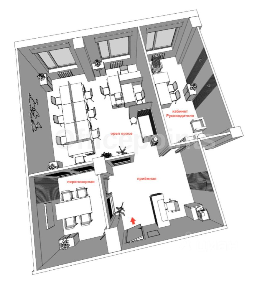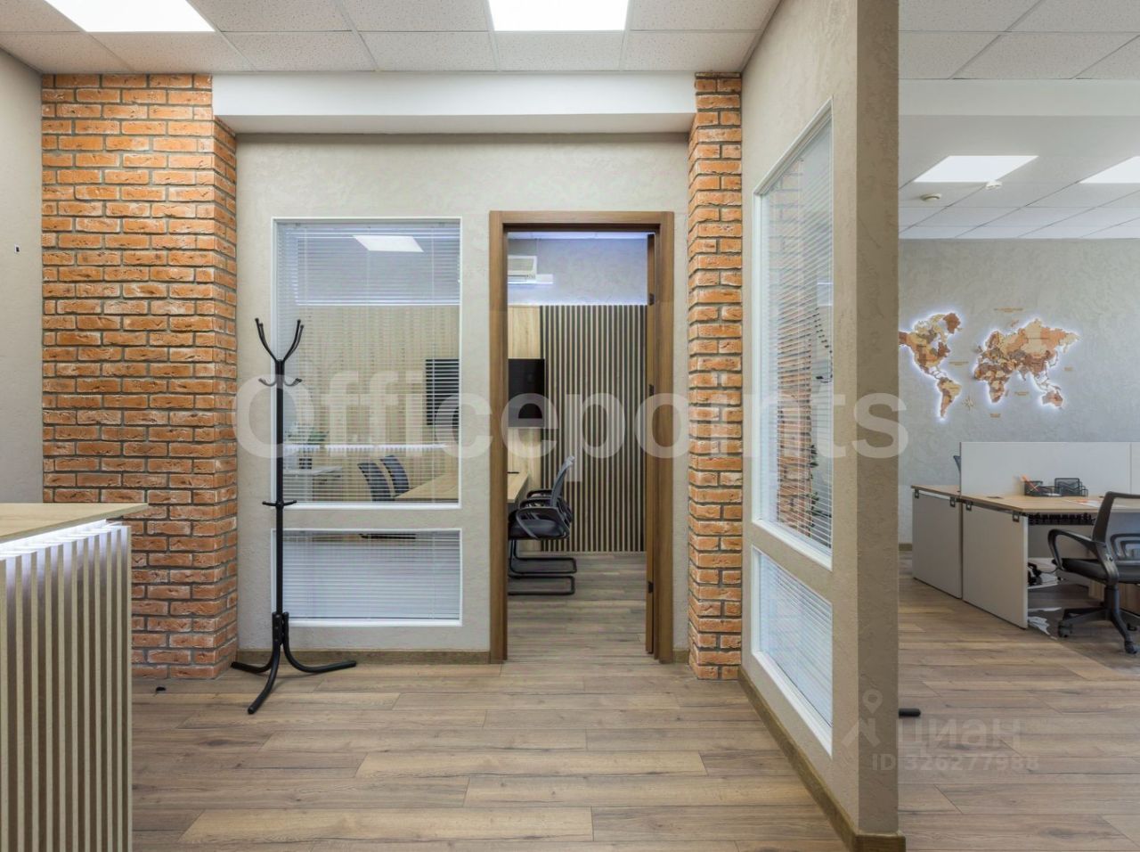 В помещении стандартная офисная отделка, кабинетная планировка.