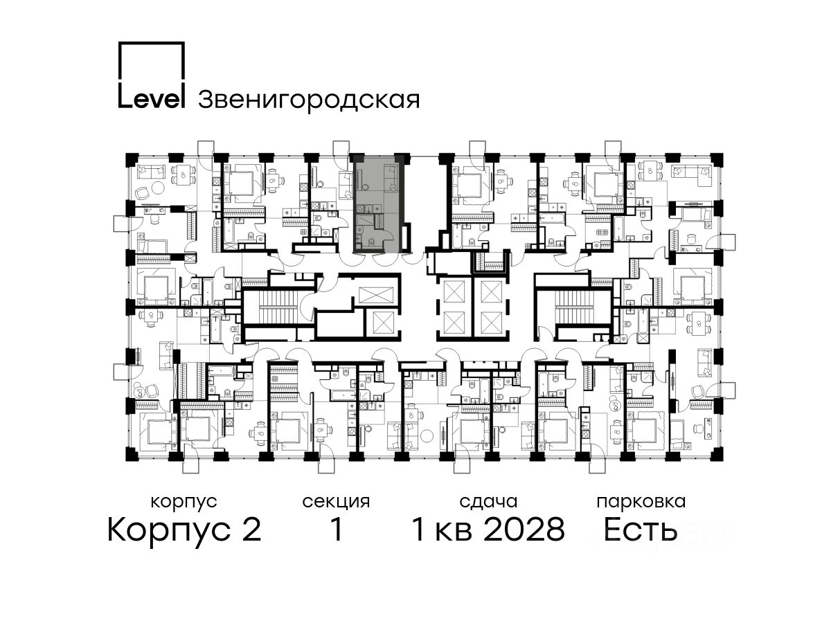 В жилом квартале продаётся студия площадью 18.80 кв.м без отделки. Квартира расположена на 13 этаже 64 этажного корпуса 2 в жилом комплексе комфорт класса Левел Звенигородская (компания Level Group/Левел групп).