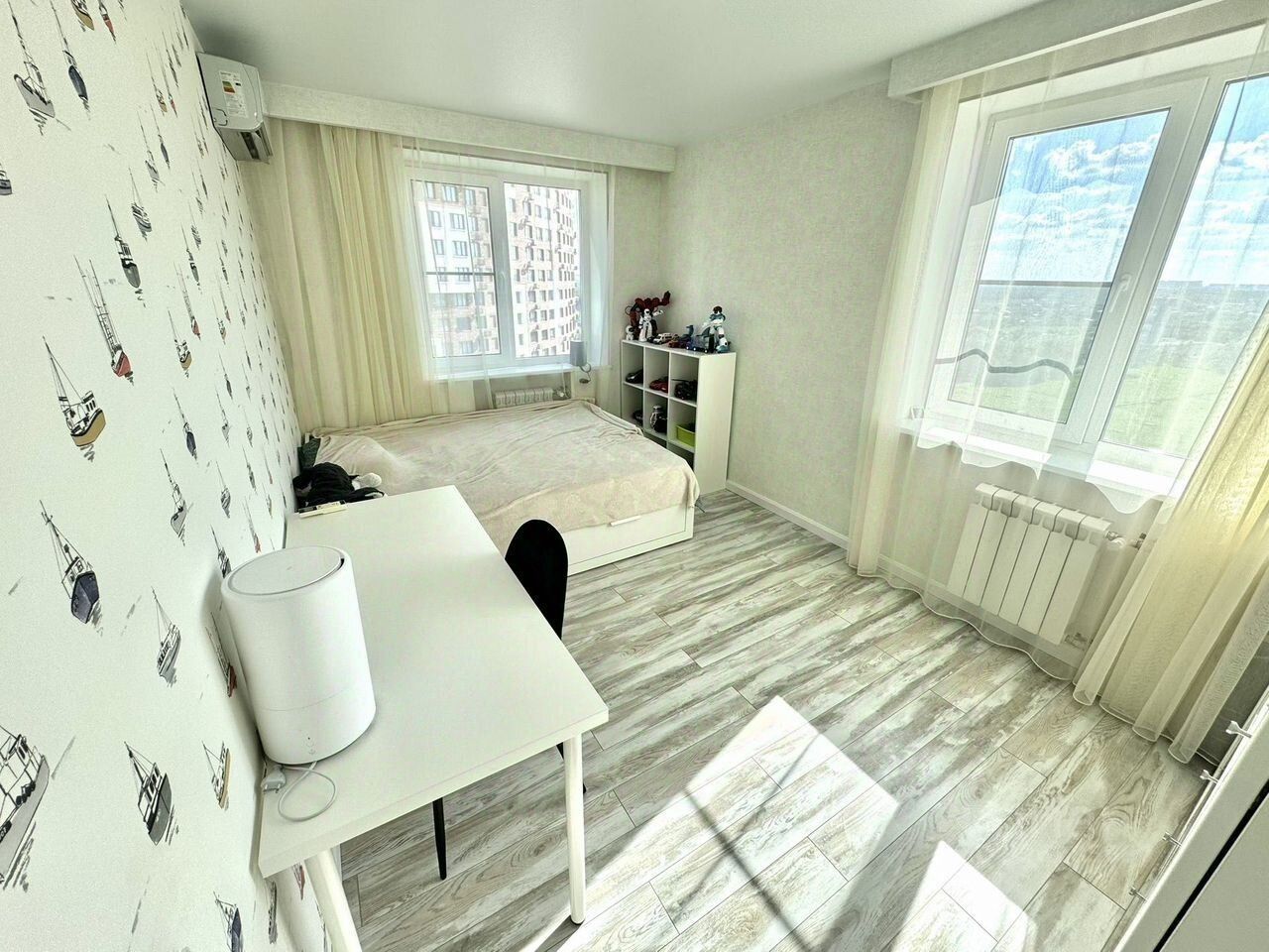 Качественный капитальный ремонт с полной заменой окон (3-камерная ПВХ защита от детей) и всей сантехники. Установлены современные водонагреватели проточного типа и аквастопы. Проточенный водонагреватель, смесители Grohe, тёплые полы по всей квартире. Полная замена электрики и батарей, продуманная разводка под современные потребности.