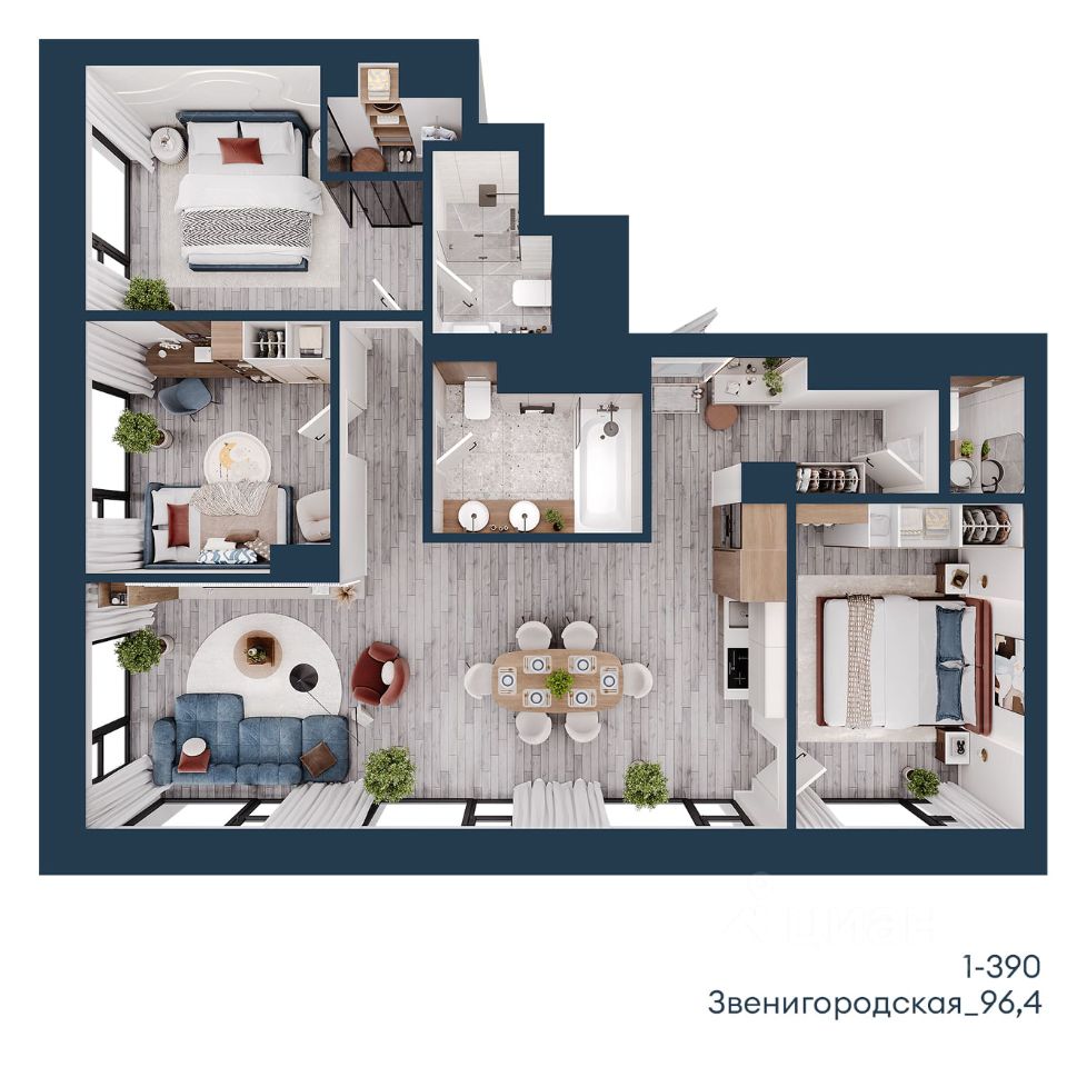 Общая площадь96,4 м2