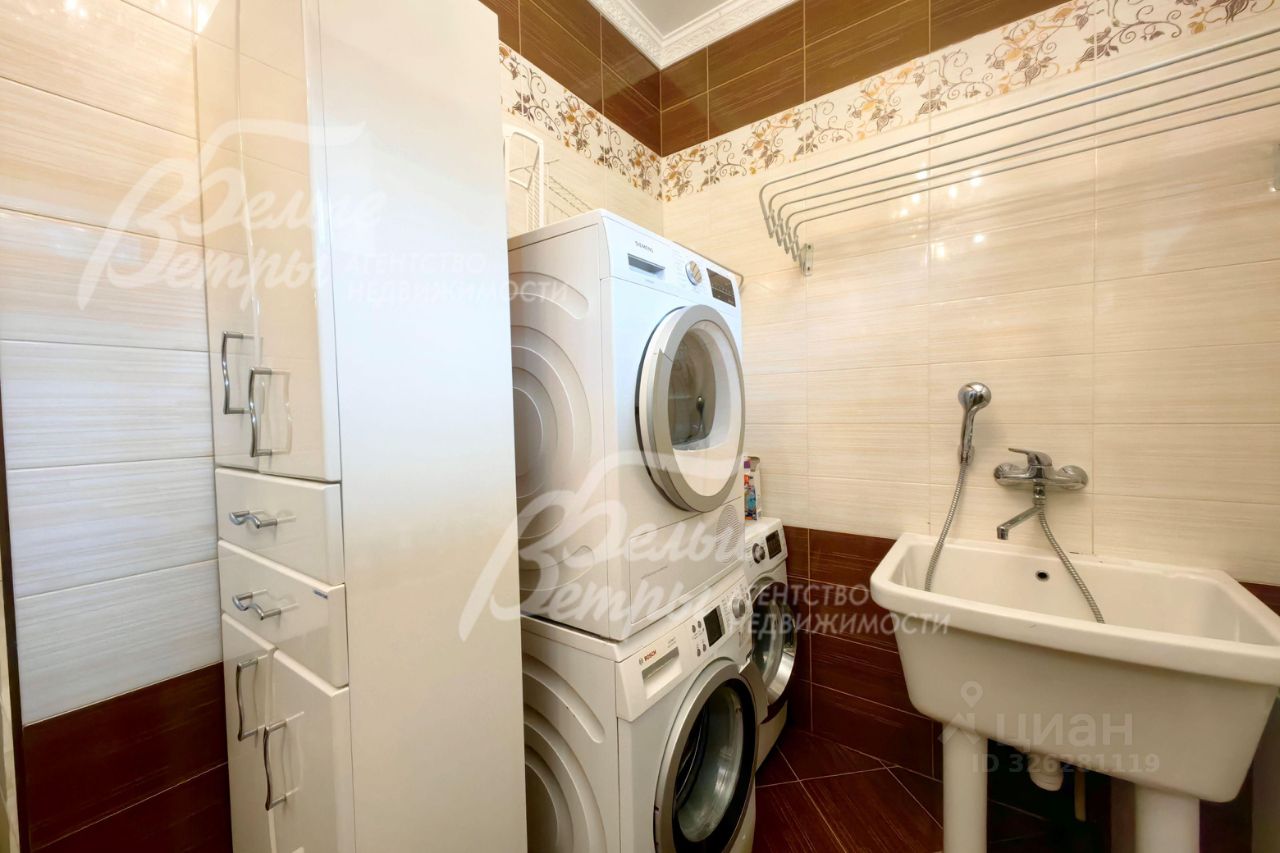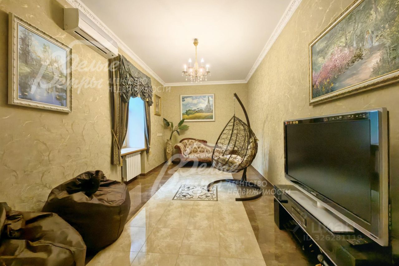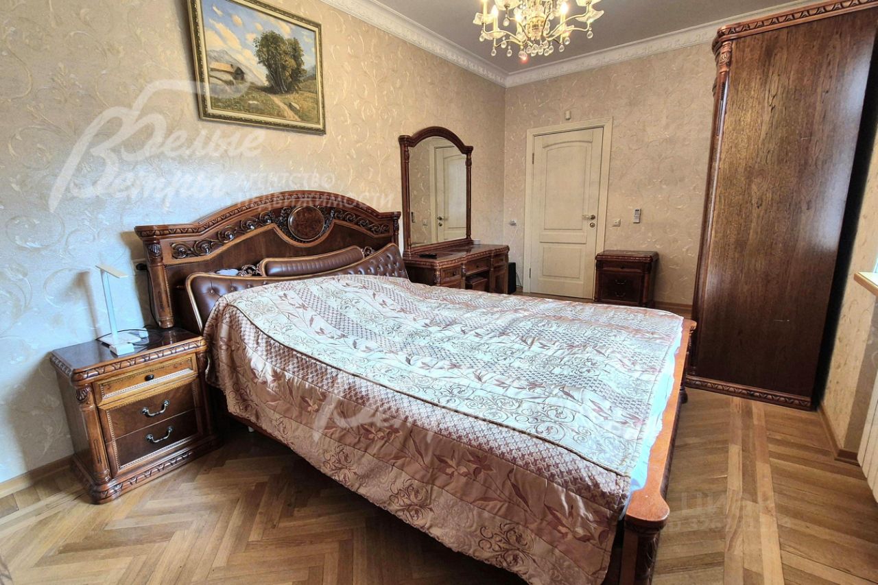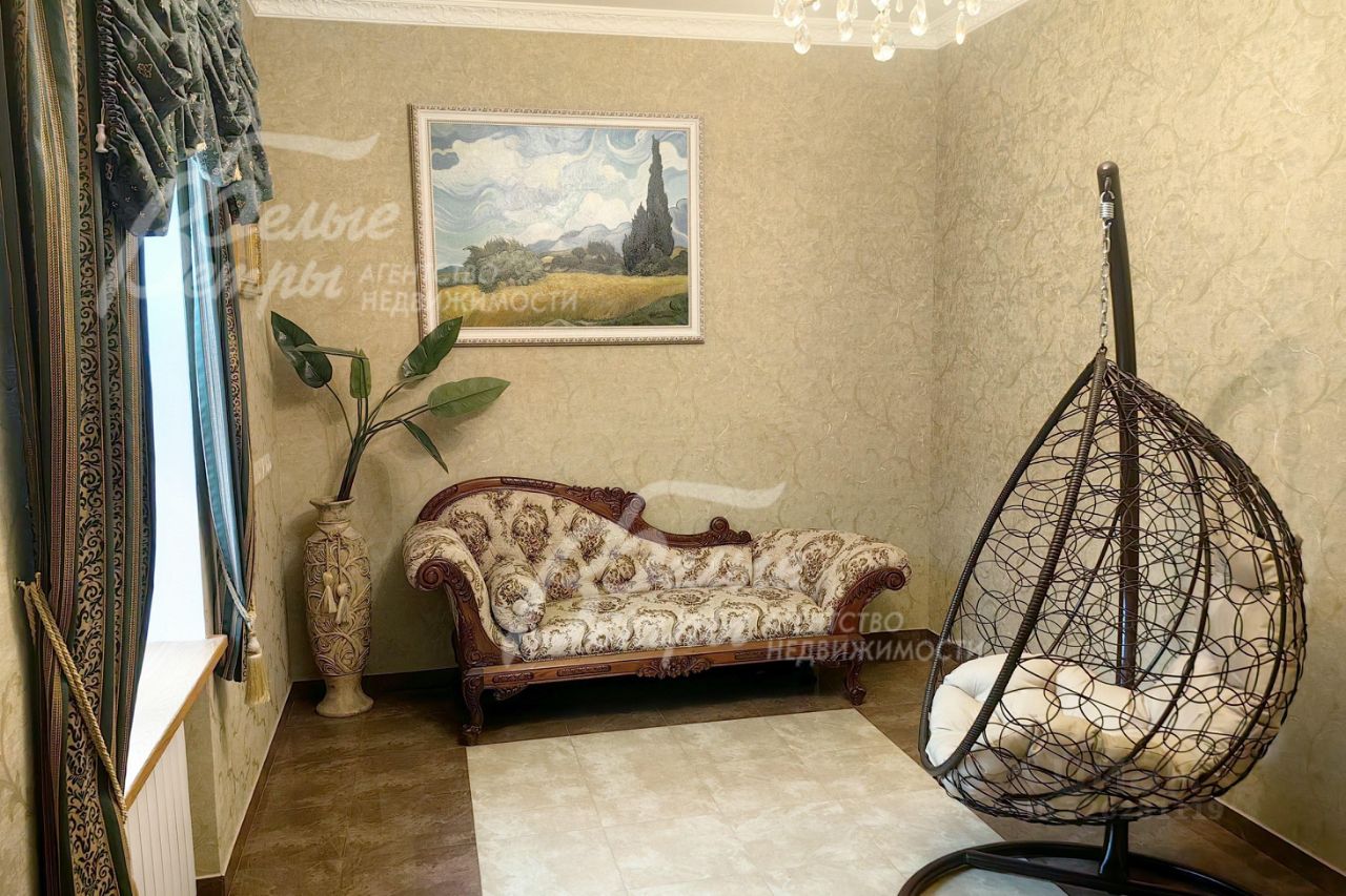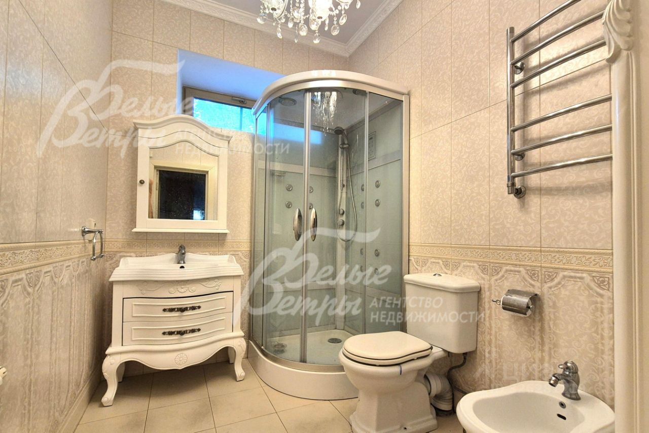 Мебель, оборудование: кухонный гарнитур в классическом стиле со шпонированными фасадами и столешницей из камня (Италия). Встроенная техника: газовая варочная панель, духовой шкаф, микроволновая печь Bosch, посудомоечная машина, двухкамерный холодильник. Телевизоры Philips, Bosch, стиральные машины Samsung и Bosch, сушильная машина Siemens. В гостиной антикварная мебель, в зоне столовой обеденная группа из массива на 8 персон. В спальнях дорогие гарнитуры из массива дерева с резными элементами (двуспальные кровати, прикроватные тумбы, комоды, туалетные столики, банкетки, вместительные шкафные группы). В кабинете кожаный диван, солидный рабочий стол и шкаф для документов из массива. В гардеробных функциональная система хранения. Во всех помещениях дорогие карнизы, шторы с подхватами и ламбрекенами, изящные тюли, оригинальные люстры и светильники. Второй свет украшают хрустальные люстры с имитацией свечей, на стенах разнообразные картины в общей стилистике дома..