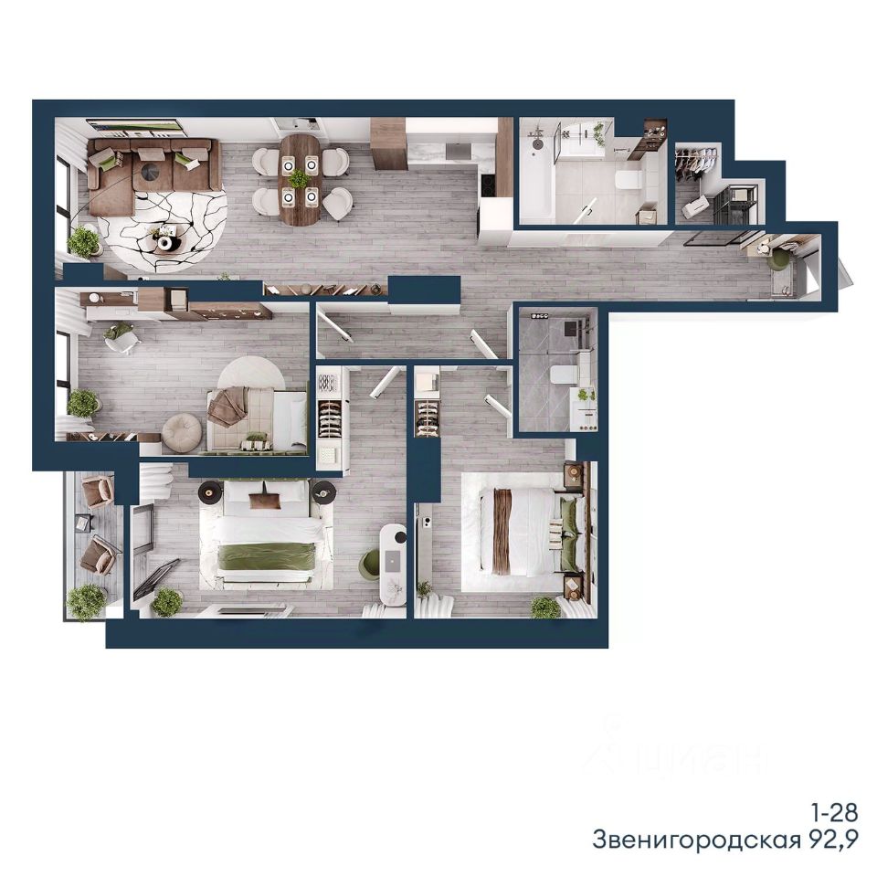 В жилом квартале продаётся 4-комнатная квартира площадью 92.90 кв.м white box. Квартира расположена на 3 этаже 48 этажного корпуса 1 в жилом комплексе комфорт класса Левел Звенигородская (компания Level Group/Левел групп).