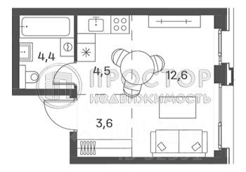 Жилая площадь12,6 м2