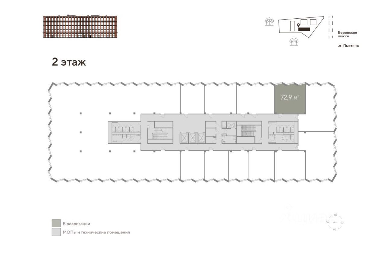 -Офисное помещение 72,9 м² на 2 этаже (корпус 1) -Панорамное остекление -Отделка shell and core -Высота потолков 3,8 м -Шаг колонн 8,1 м * 8,4 м