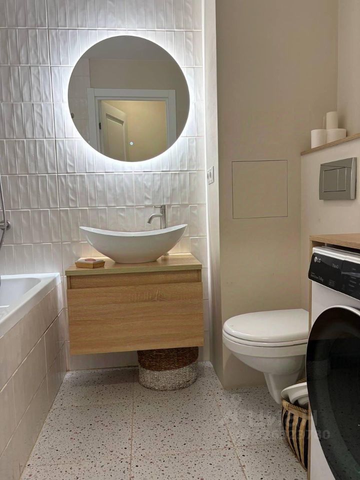 В квартире выполнен свежий ремонт. Есть все необходимое для комфортного проживания: уютная мебель на кухне и в комнате, а также вся необходимая техника — холодильник, телевизор и стиральная машина. Санузел совмещенный, с ванной.
