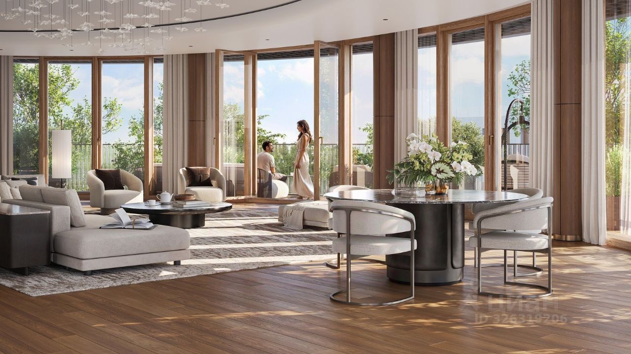 Просторная квартира с тремя мастер-спальнями. Панорамные окна наполнят квартиру светом, а уникальной её особенностью станет огромный полукруглый балкон, выйти на который можно будет из всех помещений.