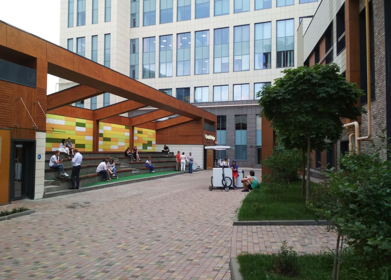 В здании 4 больших лифта, центральный ресепшн, лобби с кафе, пропускная система. Время работы 24/7. Внутри ''Парка Мира'' благоустроенная охраняемая территория, инфраструктура. Наземный и подземный платный паркинг. Удобная транспортная доступность: 10 минут пешком от станций метро Алексеевская и Рижская (БКЛ и D2), до Садового кольца 3 км, до ТТК - 1 км.