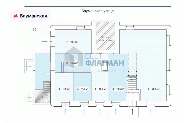 Расположение: Предлагаются в аренду помещение на улице Бауманская, ЦАО г. Москвы. Аренда помещений у метро. Шаговая доступность от ст. метро ''Бауманская'' — менее 1 минуты пешком.