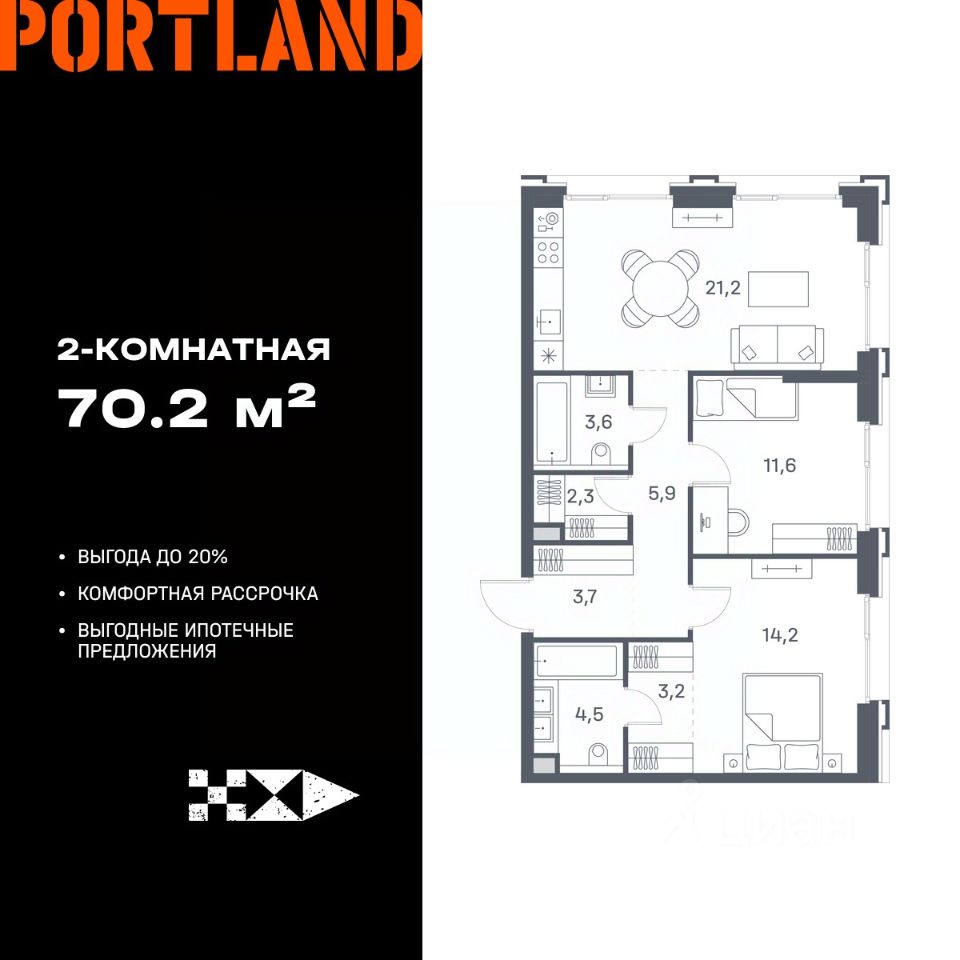 Общая площадь70,2 м2