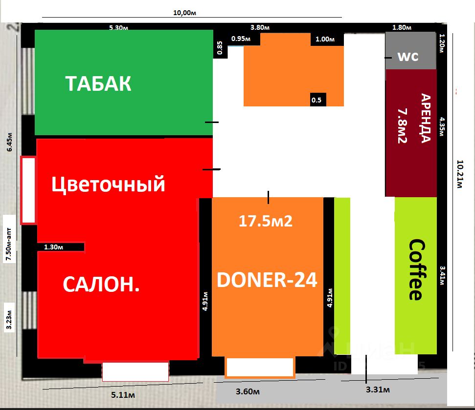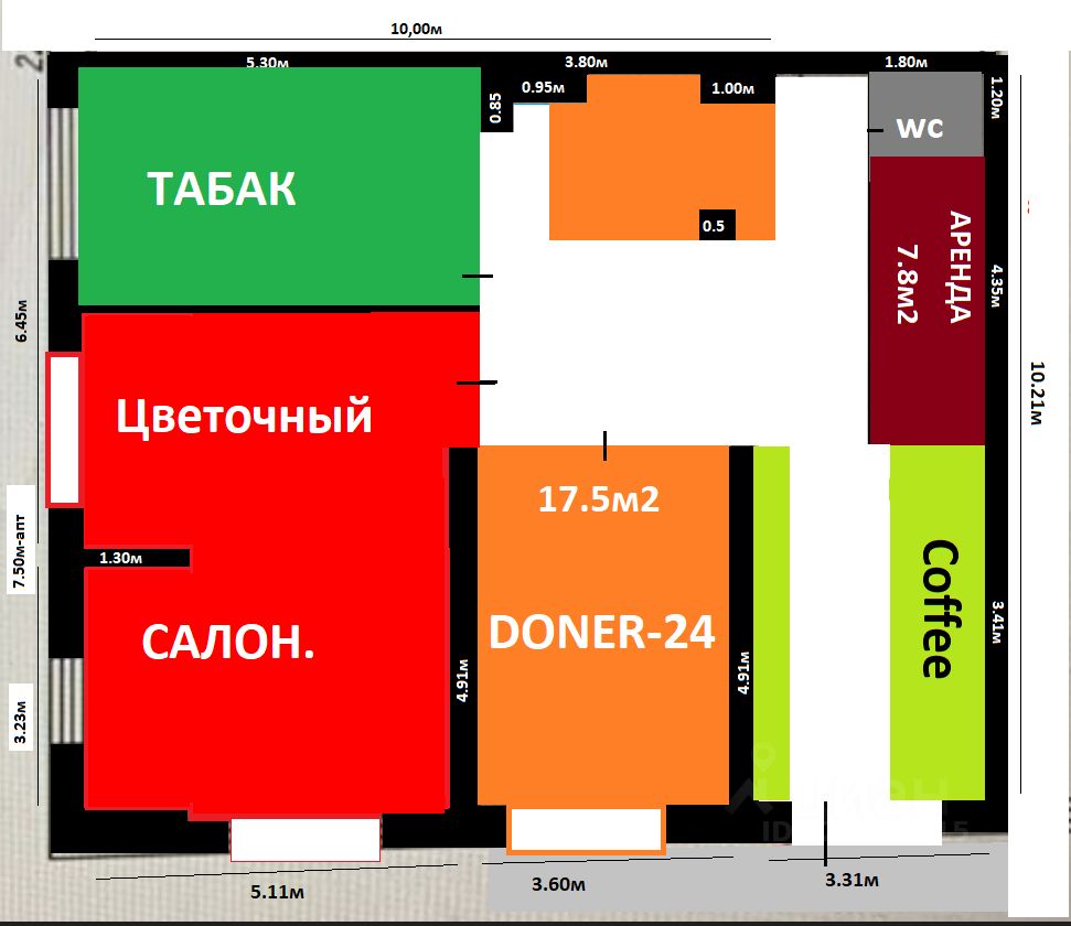 торг место : 4.35м- по витрине и 1.80м- в глубину