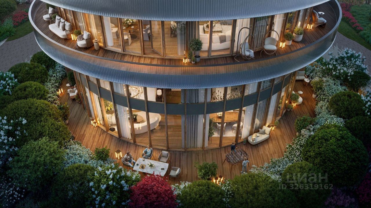 Светлая просторная квартира с двумя мастер-спальнями и панорамными окнами на две стороны света. Вид открывается на цветущий сад и витражный парк с соснами.