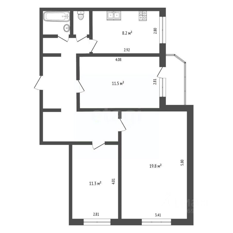 Состояние: частично с ремонтом. Кухня и одна спальня — в отличном состоянии. Две другие комнаты — под вашу отделку. Это ваш шанс добавить свои идеи без необходимости сносить старое. Всё работает, можно заселяться и жить.