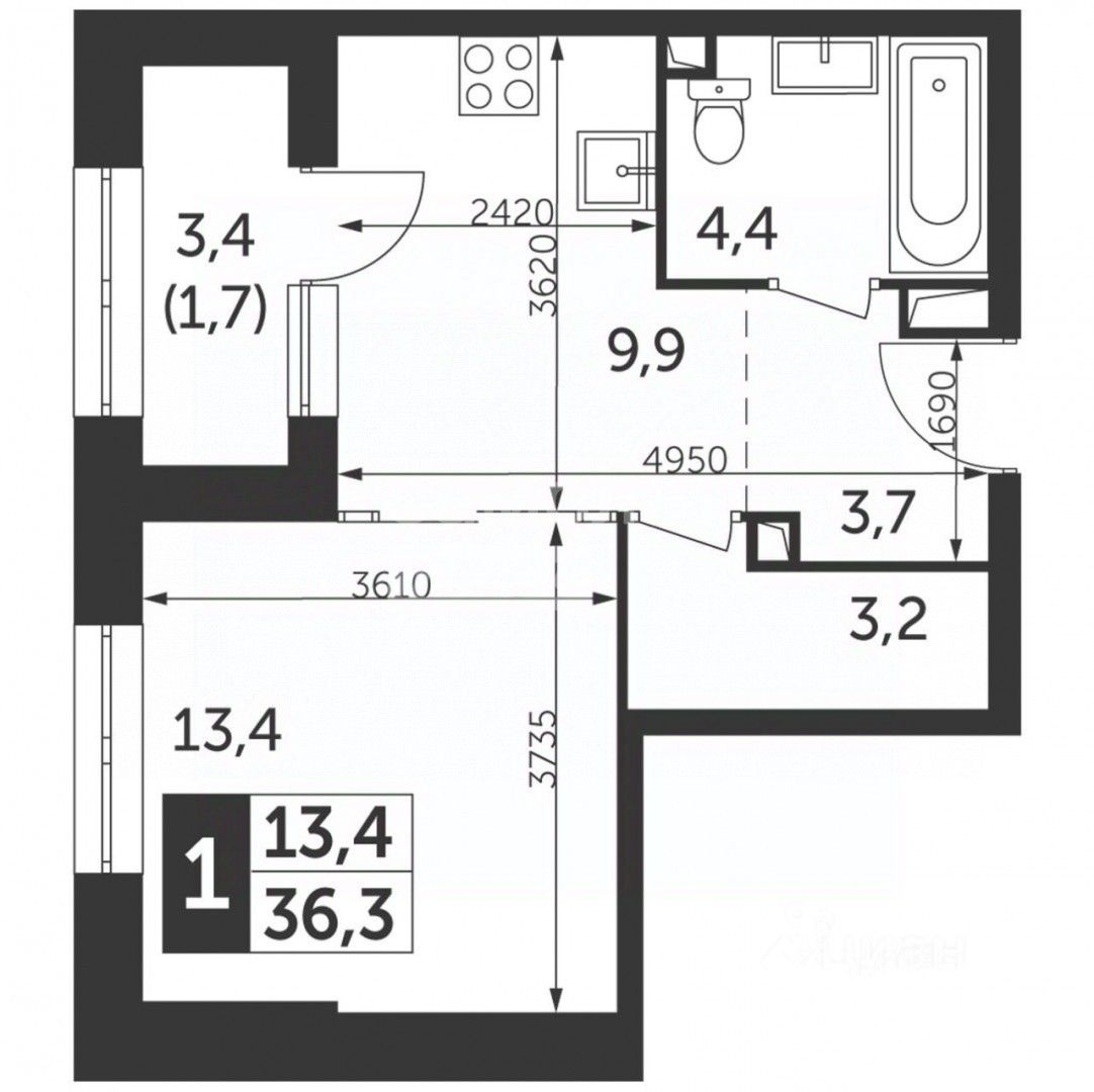 Арт. 129260612 О квартире Просторная 1комнатная планировка. Большие окна, высокие потолки. Отделка white box — готовая основа для дизайна. Качественная шумоизоляция. Условия: свободная продажа, один собственник, Выгодные условия для покупку в ипотеку от 12,25% вместо 21% только для наших клиентов