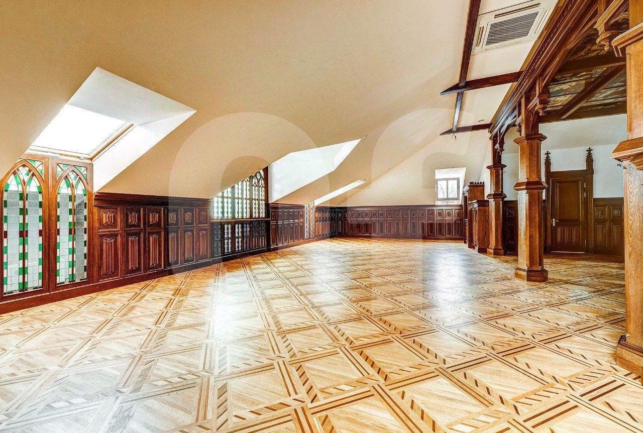 Фактическая площадь здания - 1504 м², зарегистрированная площадь - 1209 м². На мансардном этаже есть терраса площадью 86 м². Подвальный этаж с окнами. Перекрытия подвального этажа - кирпичные своды. В подвальном этаже располагается чаша для бассейна. Мощность электричества - 400 кВт. Особняк свободен от арендаторов. Возможна аренда здания целиком за 1 500 000 $/год. Реставрация данного объекта длилась семь лет (2006-2013).