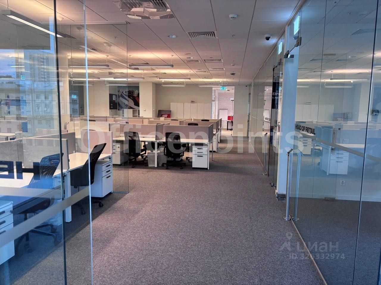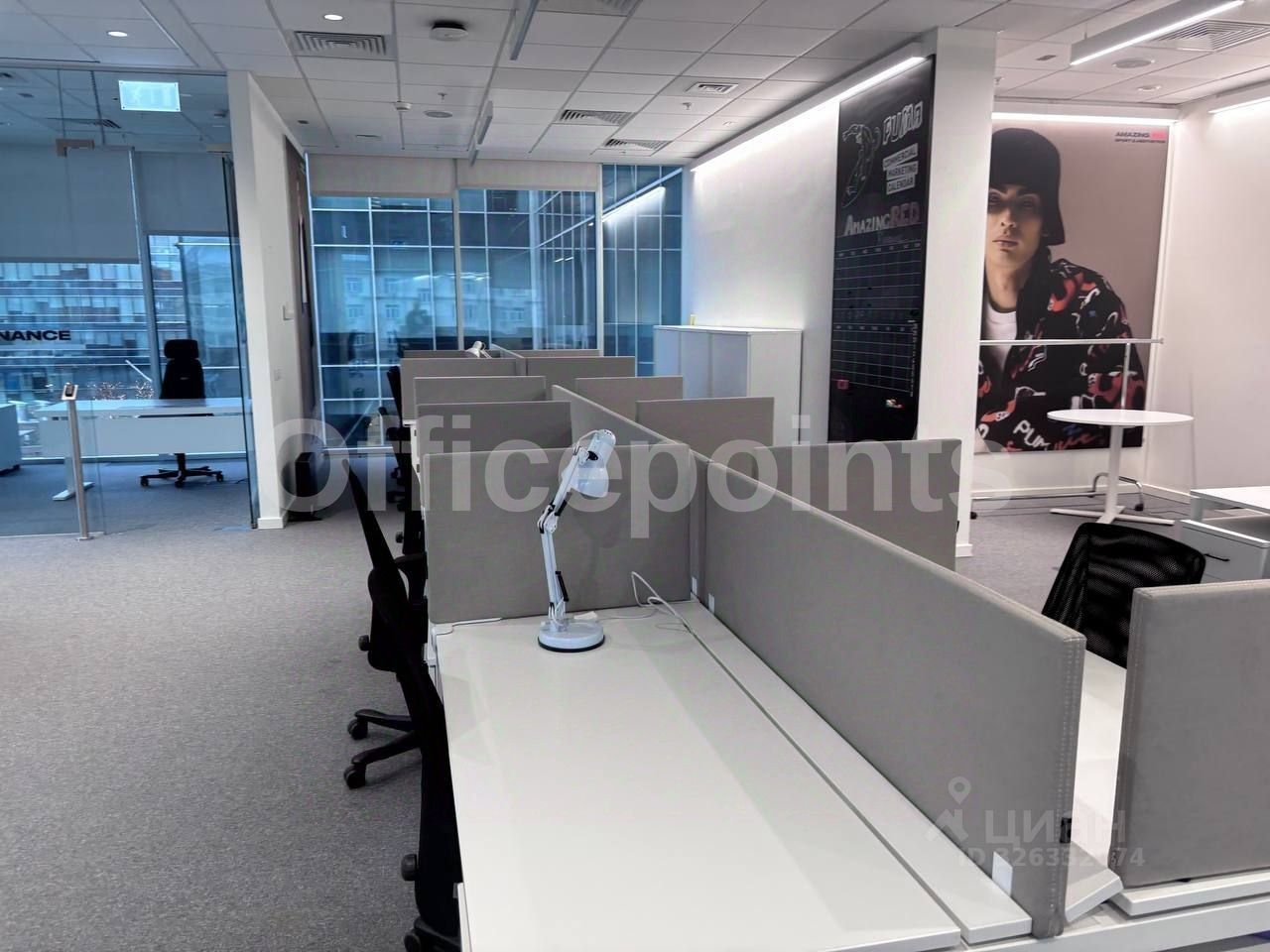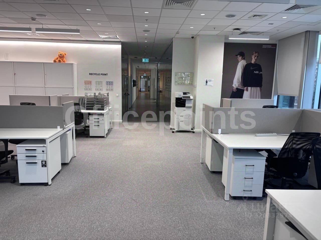 В помещении выполнена офисная отделка, смешанная планировка.