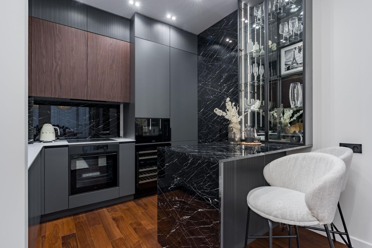 Техника: Холодильник Liebherr, отдельный немецкий винный шкаф, духовой шкаф и микроволновка Gorenje, вся остальная техника Asko (аналог Miele). В ЖК работает собственная котельная (воду не отключают), а для полного спокойствия установлен дополнительный проточный водонагреватель.