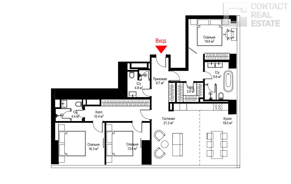 Комфортная планировка: просторная кухня-столовая-гостиная, мастер-спальня с собственной ванной и гардеробной комнатой, еще две уютные спальни и два отдельных санузла, удобная прихожая. Выполнена качественная дизайнерская отделка из натуральных и дорогих материалов — будущие владельцы смогут сразу приступить к самому приятному: украшению своего дома, выбору мебели и декора.