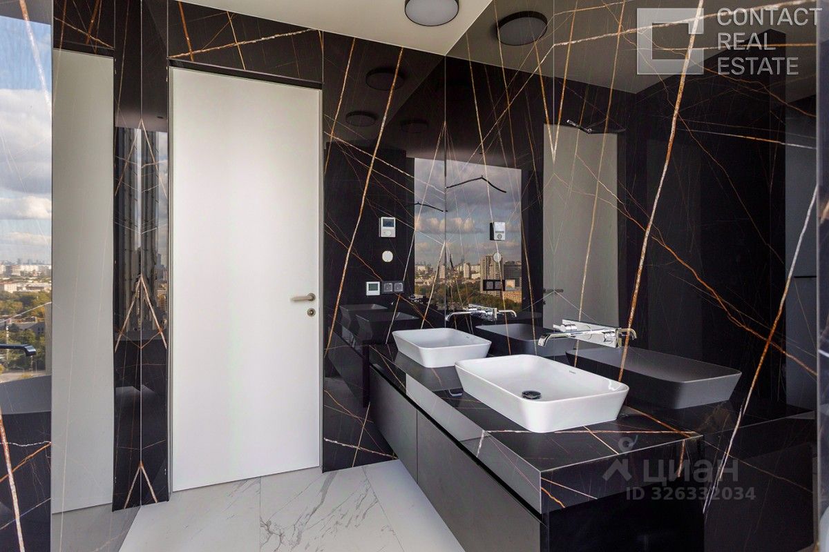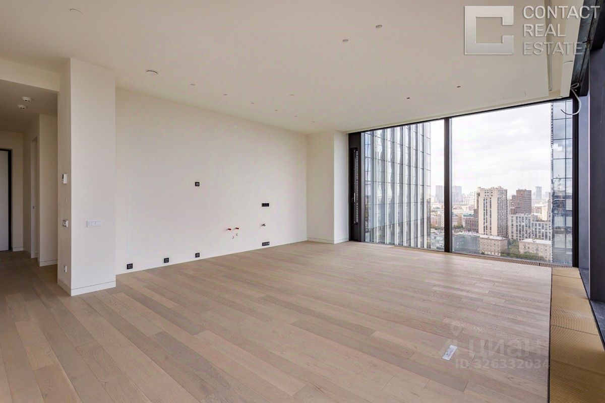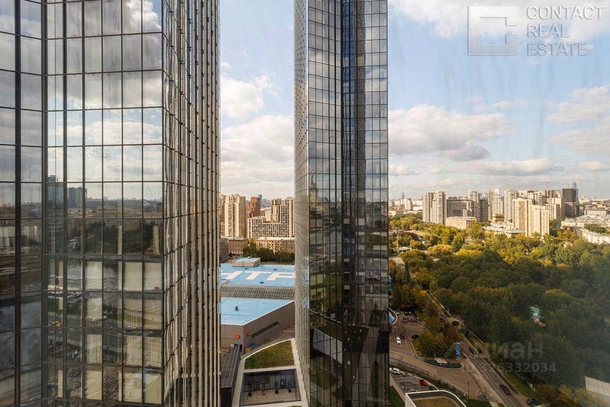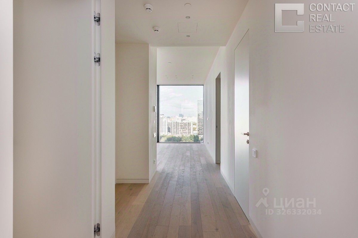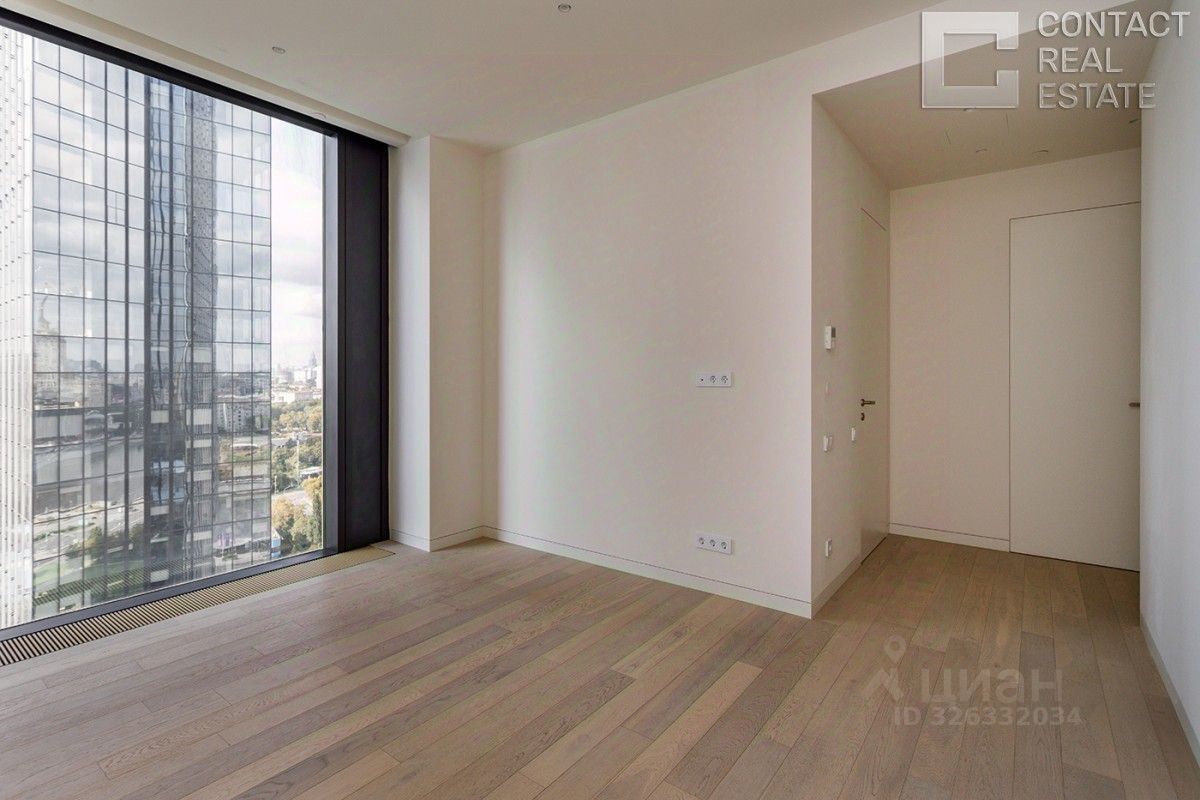 Квартира очень светлая и просторная, благодаря высоким потолкам и множеству панорамных окон. Из окон открывается потрясающий панорамный вид на центр Москвы, Москва-реку, зеленый парк, ''Москва-Сити'', Дом Правительства РФ.
