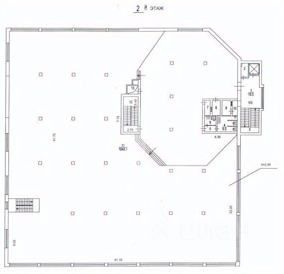 Общая площадь : 6146 м² Наземная площадь : 4433 м² Арендуемая площадь : 5318 м²
