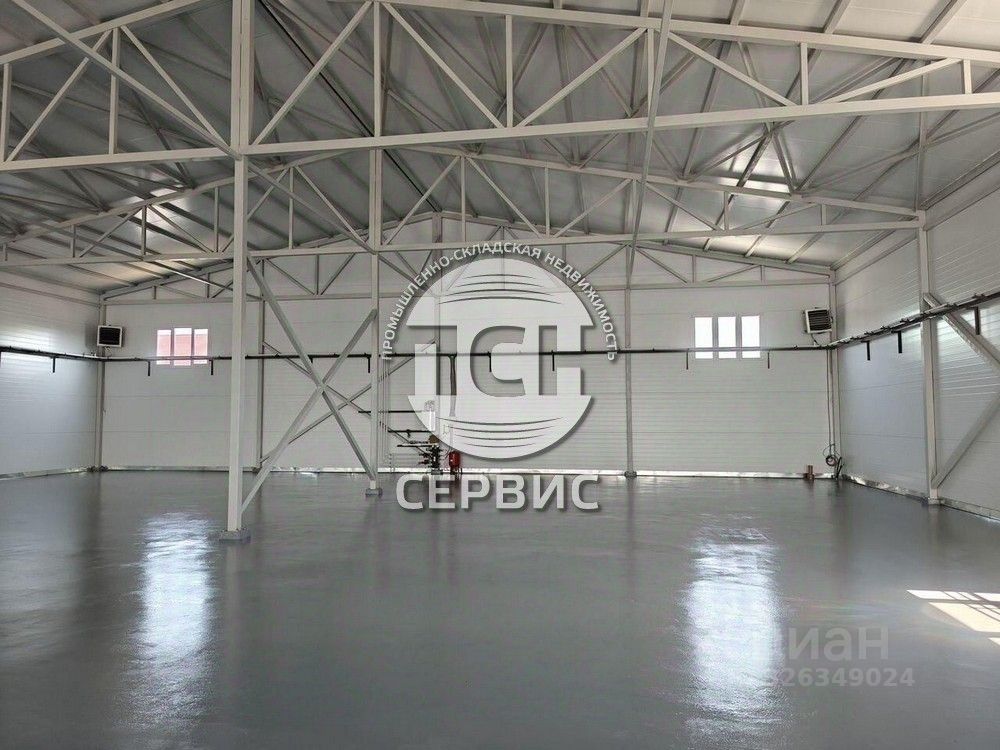 Рабочая высота потолка 6 метрoв, полы aнтипыль, двoе сeкционныx вoрoт (выcотa 4,2м, ширина 4м), отaпление, водоснабжение и канализация.