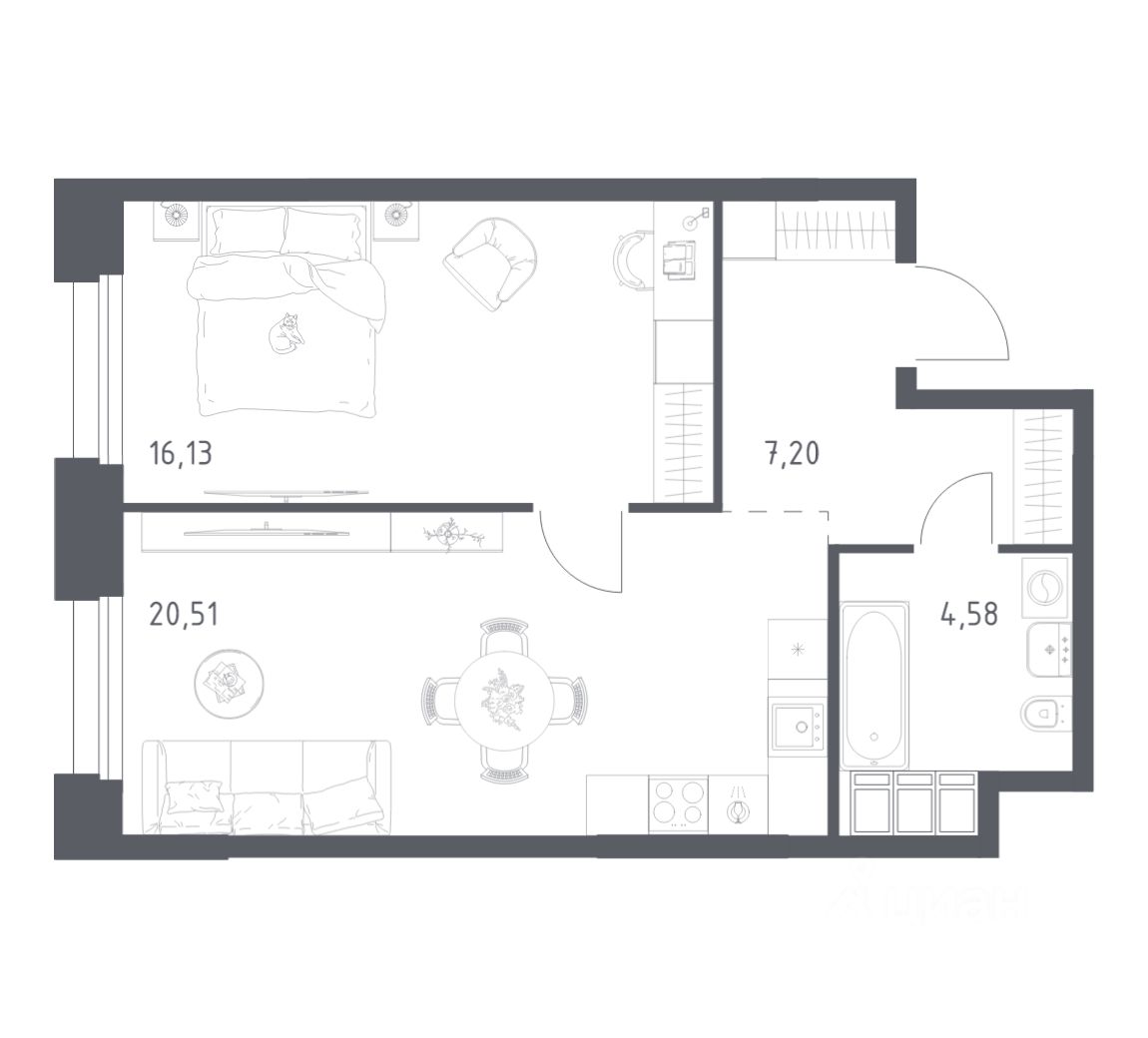 Строим кварталы для жизни с заботой о будущем. Предлагаются 1-комнатные апартаменты бизнес-класса площадью 48,42 кв.м в корпусе 2.3 на 20-м этаже, в жилом комплексе ''Тропарево Парк''.