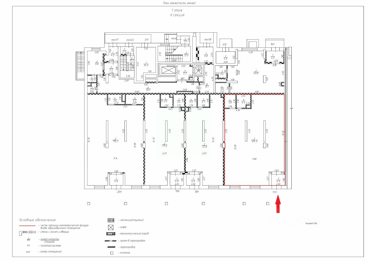 Коммерческое помещение площадью 136.5 м², расположено по адресу: г. Москва, 6-я Радиальная улица, 7/1к1, помещение 17Н, район Бирюлёво Восточное. Объект занимает 1 этаж в здании с этажностью 20 этажей. Помещение без отделки, свободного назначения, имеет отдельный вход.