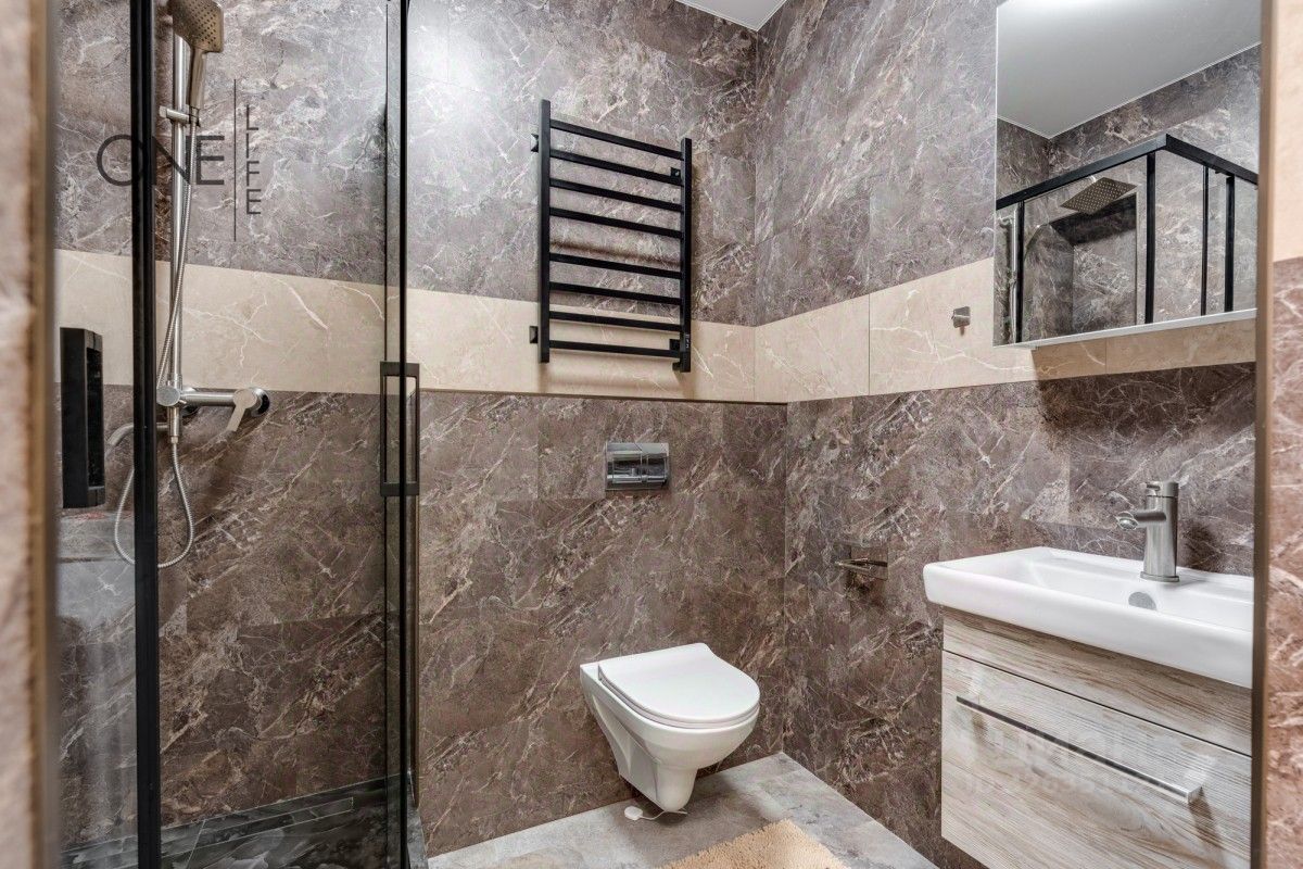 Дизайнерский ремонт добавляет квартире шарма, а наличие мебели, холодильника, посудомойки, стиральной машины, телевизора и интернета обеспечит комфортное проживание. Современный кондиционер создаст оптимальный микроклимат в помещении в любое время года. Санузел совмещенный, что удобно и практично.