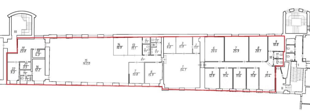 Этот лот состоит из нескольких помещений: 355 кв. м. и 244 кв. м.