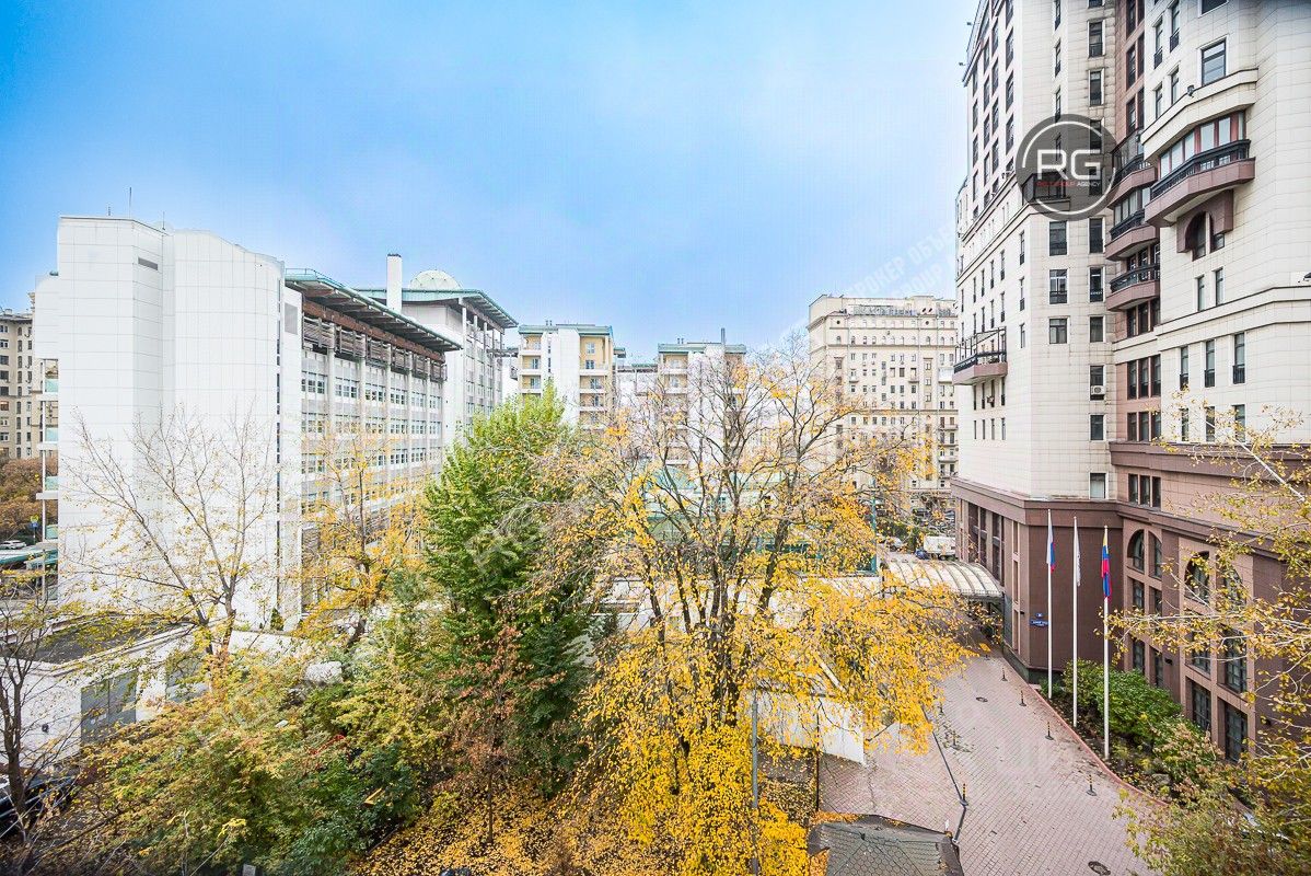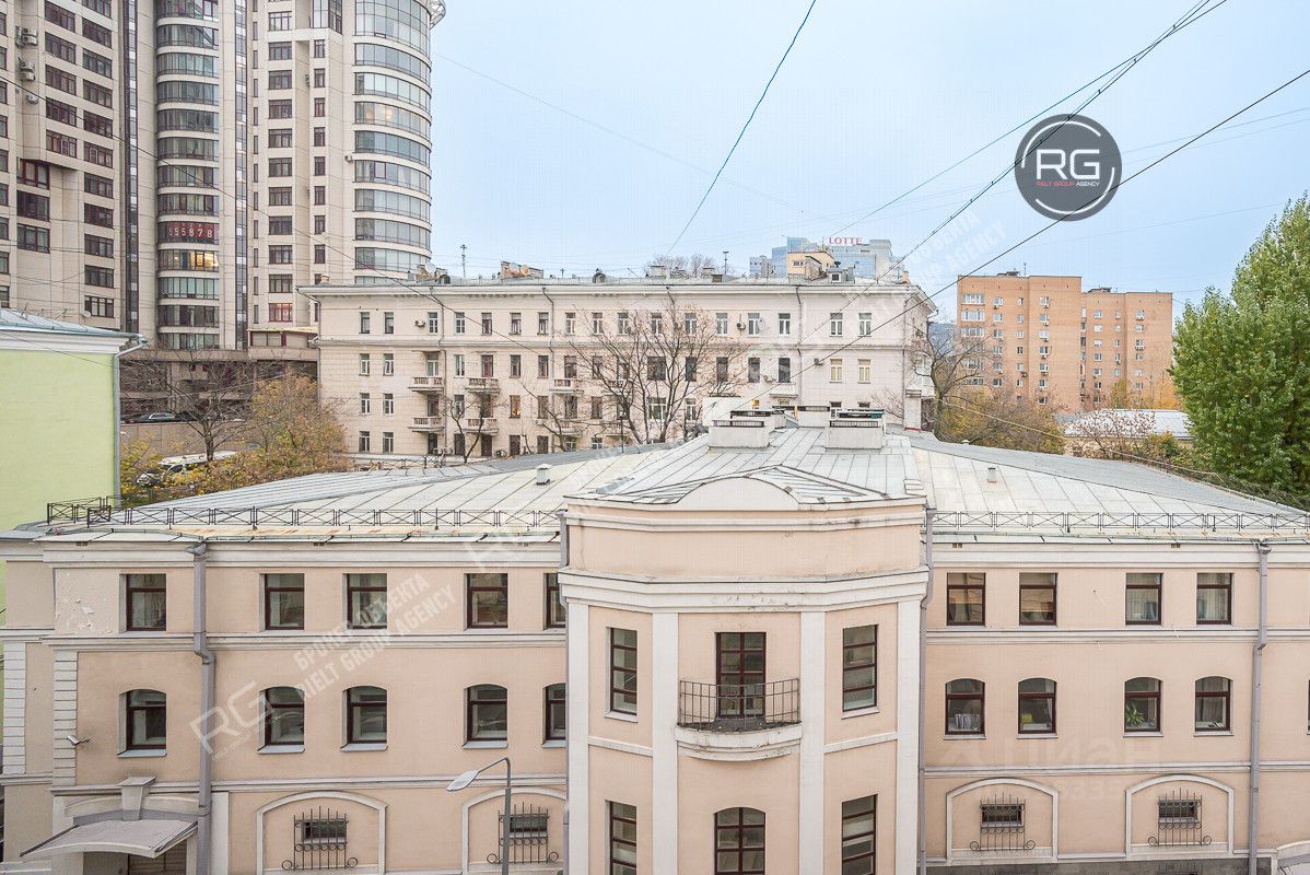Квартира очень светлая, и имеет четыре больших окна вид из которых открывается в зеленый двор, на посольство Великобритании и Москва-Сити, а также на Панфиловский переулок.