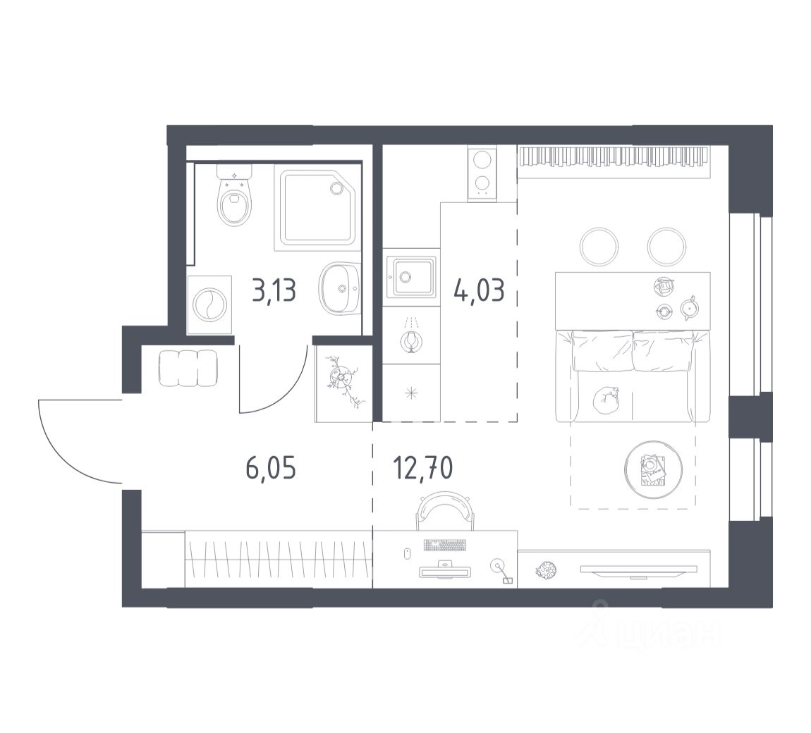 Строим кварталы для жизни с заботой о будущем. Предлагается студия комфорт-класса площадью 25,91 кв.м в корпусе 14.1 на 3-м этаже, в жилом комплексе ''Пригород Лесное''.