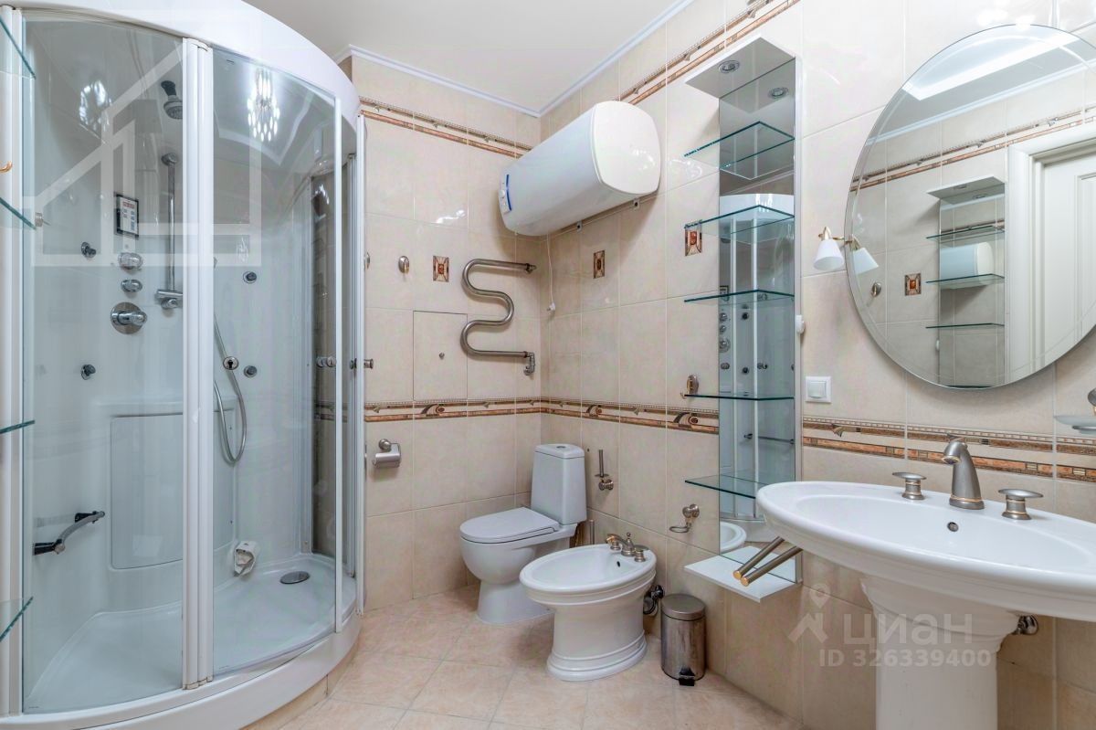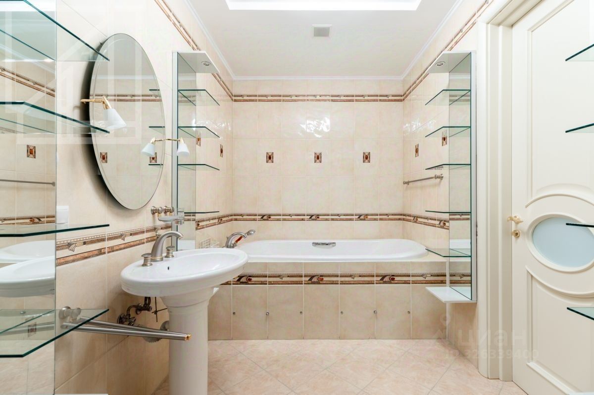 Планировка: гостиная, кухня-столовая, три спальни, две ванные комнаты, холл, застеклённый балкон. Квартира полностью меблирована и укомплектована бытовой техникой. В квартире выполнена светлая отделка в классическом стиле, интерьер оформлен в приятных кремовых тонах, украшен белыми молдингами и изящными подвесными люстрами. Открытый панорамный вид из окон, много света.