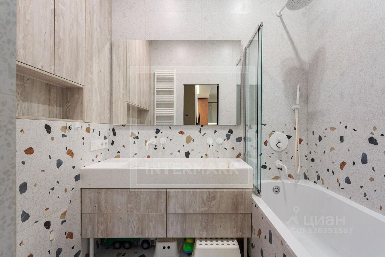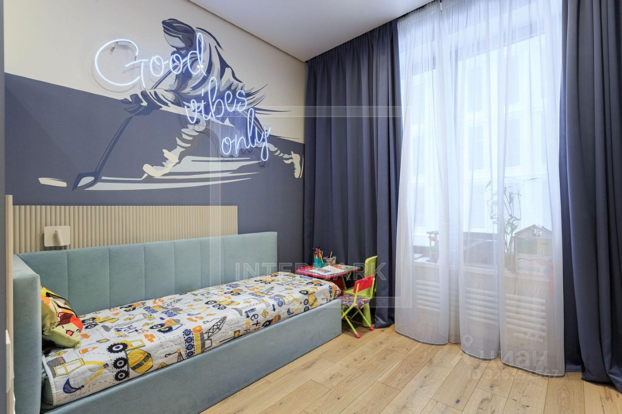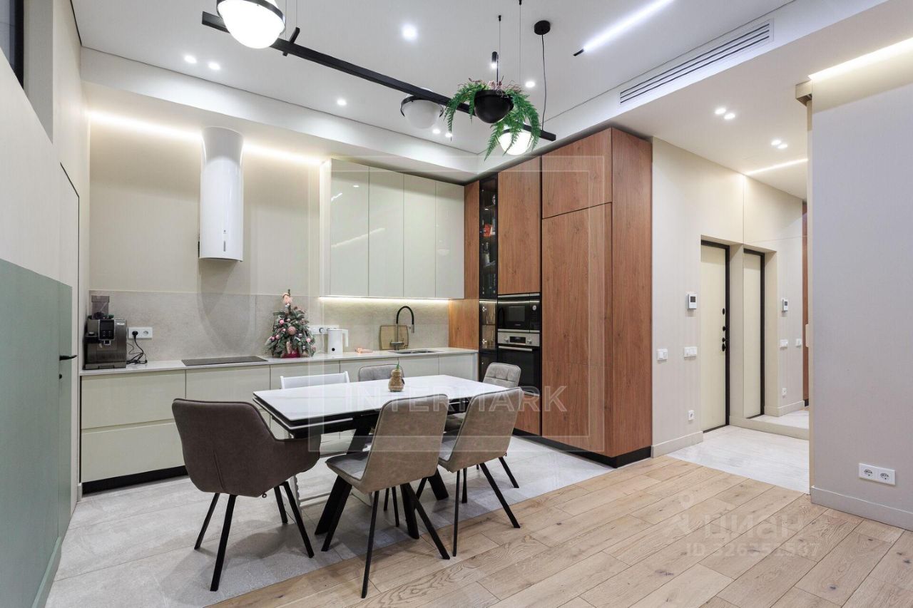 Пространство продумано до мелочей: сердцем дома стала светлая кухня-гостиная, изолированная мастер-спальня совмещена с кабинетом, предусмотрено три детских комнаты, два санузла, отдельные гардеробная и постирочная. Такая планировка идеально подходит для семьи, где дети разного возраста. Квартира полностью готова к проживанию: она меблирована, оснащена встроенной техникой Bosch и Elica, а её современный нейтральный интерьер не потребует от вас дополнительных затрат.
