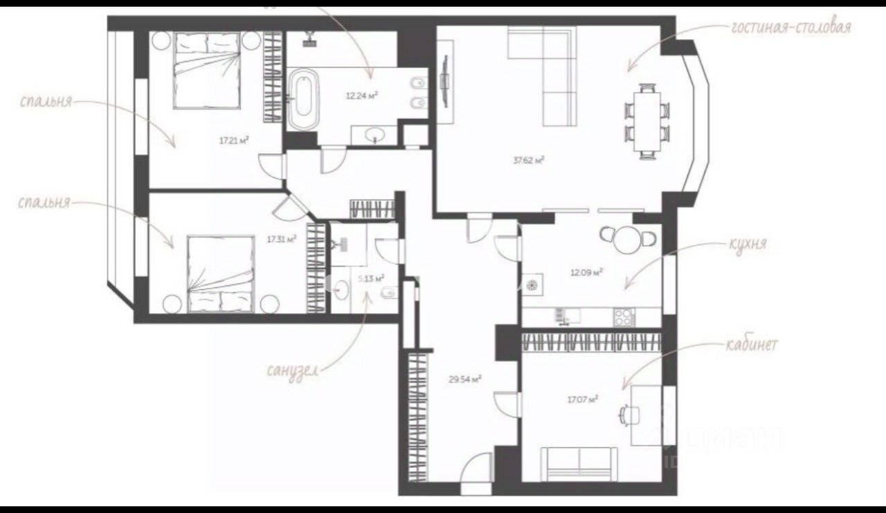 Планировка мечты: - 3 изолированные спальни - Просторная кухня-гостиная - Балкон-лоджия, на которой легко устроить утренний кофе.