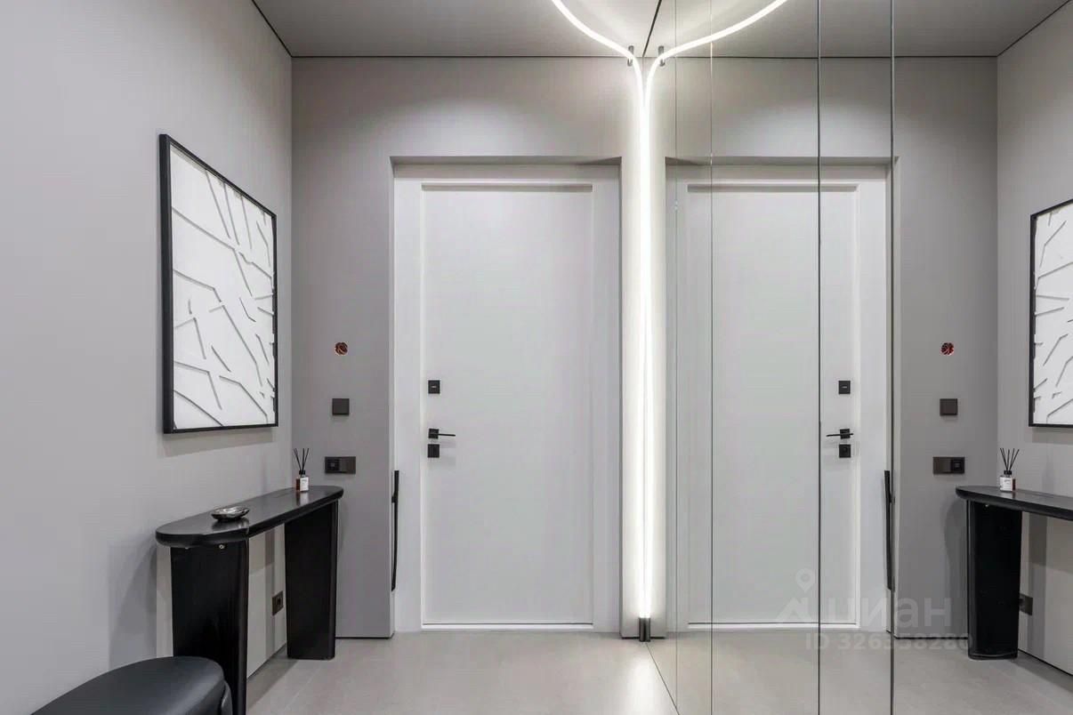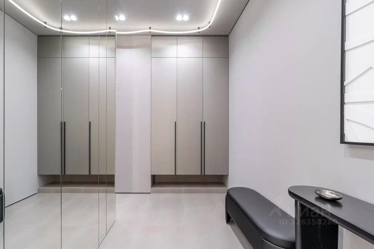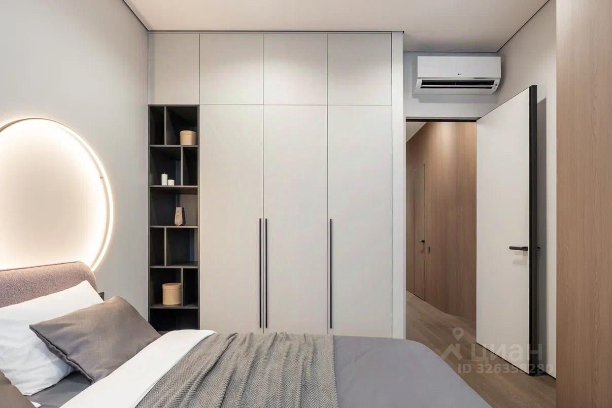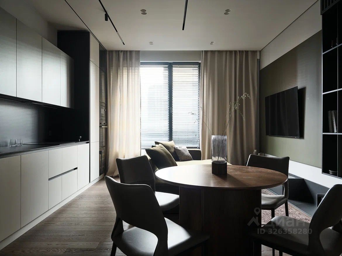 3-комнатная квартира 104 м? с дизайнерской отделкой ЖК Остров | Бизнес-класс | Мнёвниковская пойма Продаётся полностью готовая к проживанию квартира с премиальной отделкой и продуманной планировкой. 4 этаж, 104 м3, 3 спальни. Планировка: * кухня-гостиная, * мастер-спальня с гардеробной, * вторая спальня, * кабинет / гостевая, * ванная с ванной и душем, * второй санузел с душевой. Интерьер: Дизайнерский ремонт в спокойных, лаконичных оттенках. Использованы натуральное дерево и камень. Квартира полностью укомплектована мебелью и встроенной техникой, есть винный холодильник. Несколько сценариев освещения: люстры, трековый и акцентный свет.