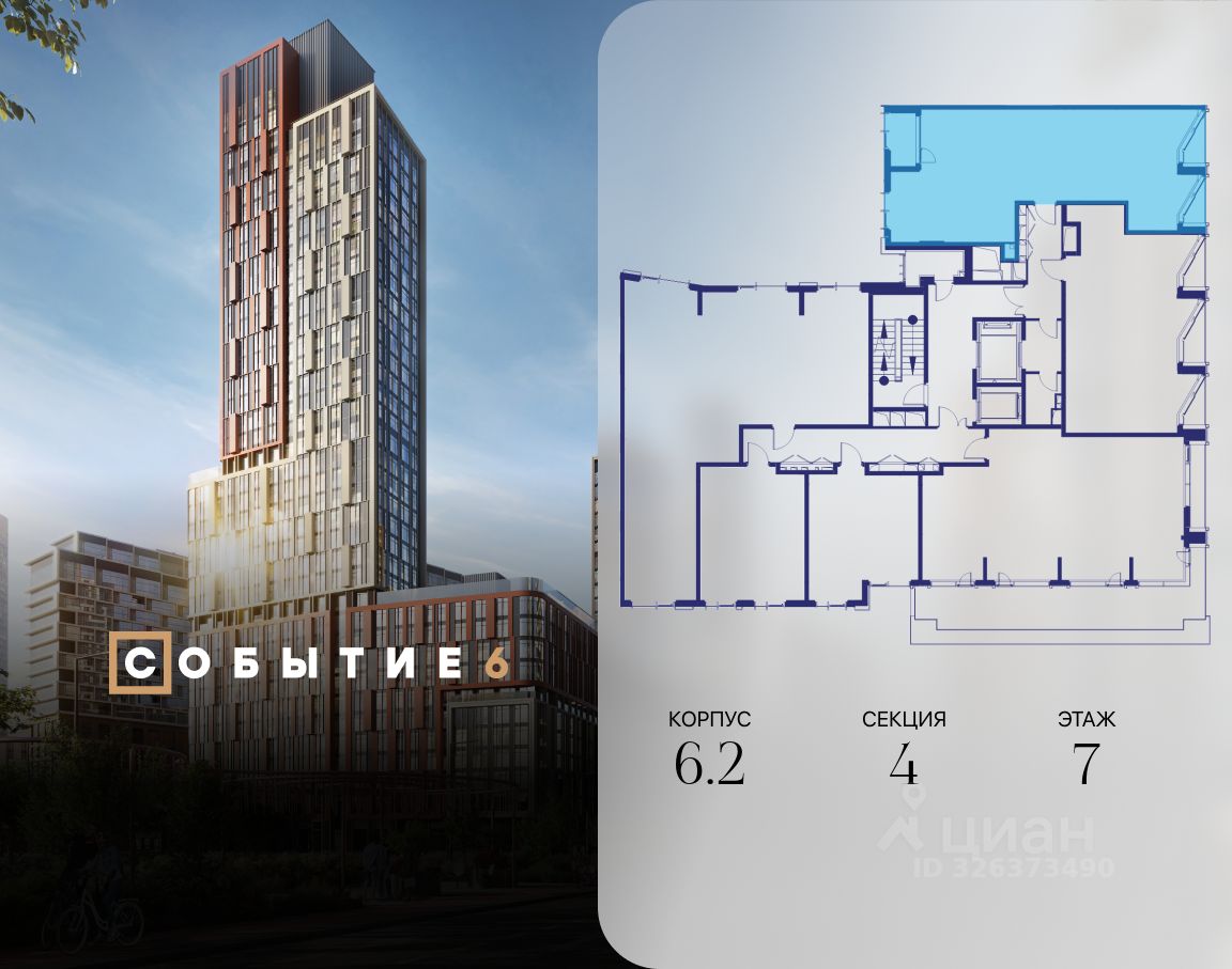Продаётся 3-комнатная квартира от застройщика: общая площадь 76.00 м², жилая 37.00 м², кухня 20.60 м², 7-й этаж, жилой квартал ''Событие-6'', корпус 2 (секция 4) Срок сдачи: 1 квартал 2029 года.