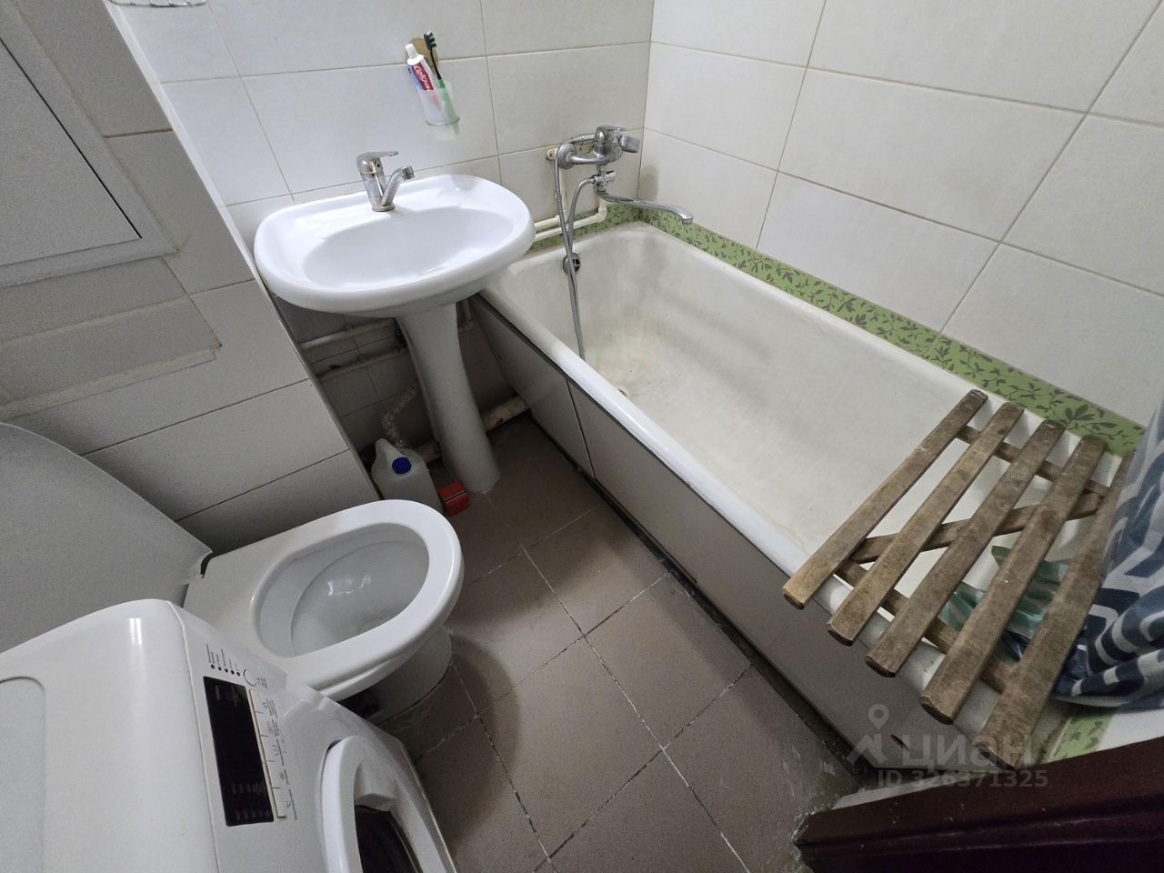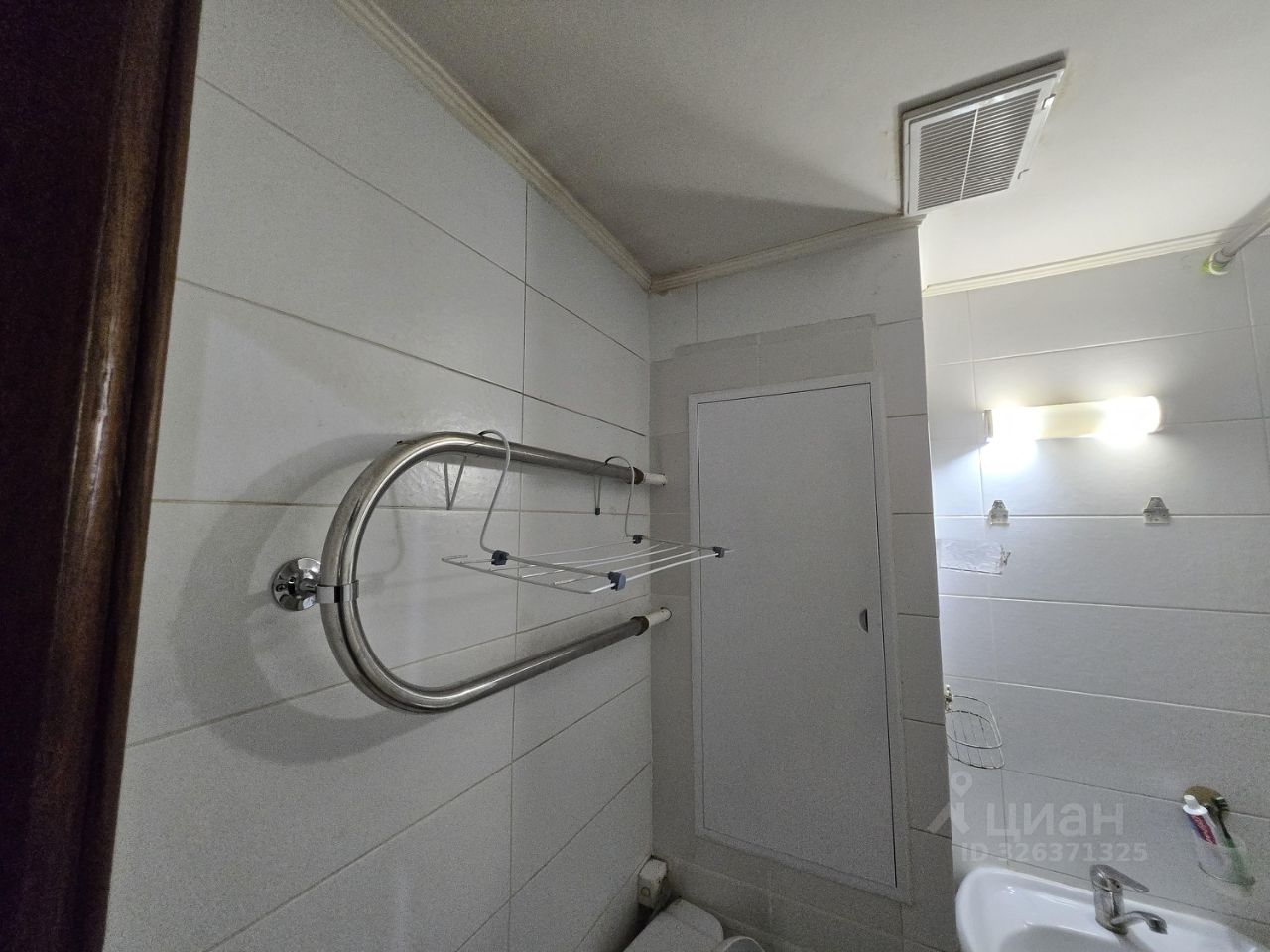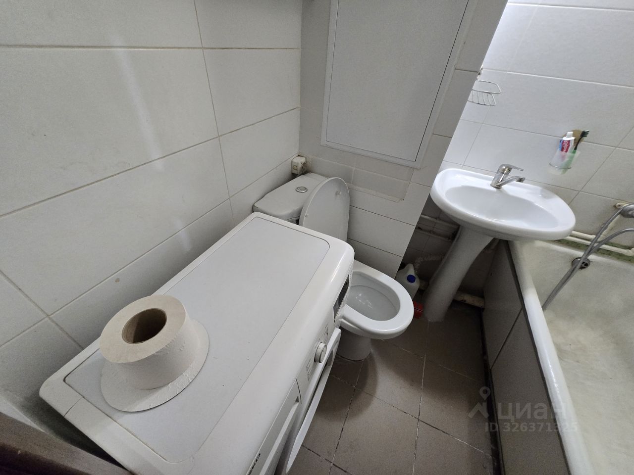 Санузел совмещенный с полноценной ванной. Полотенцесушитель.