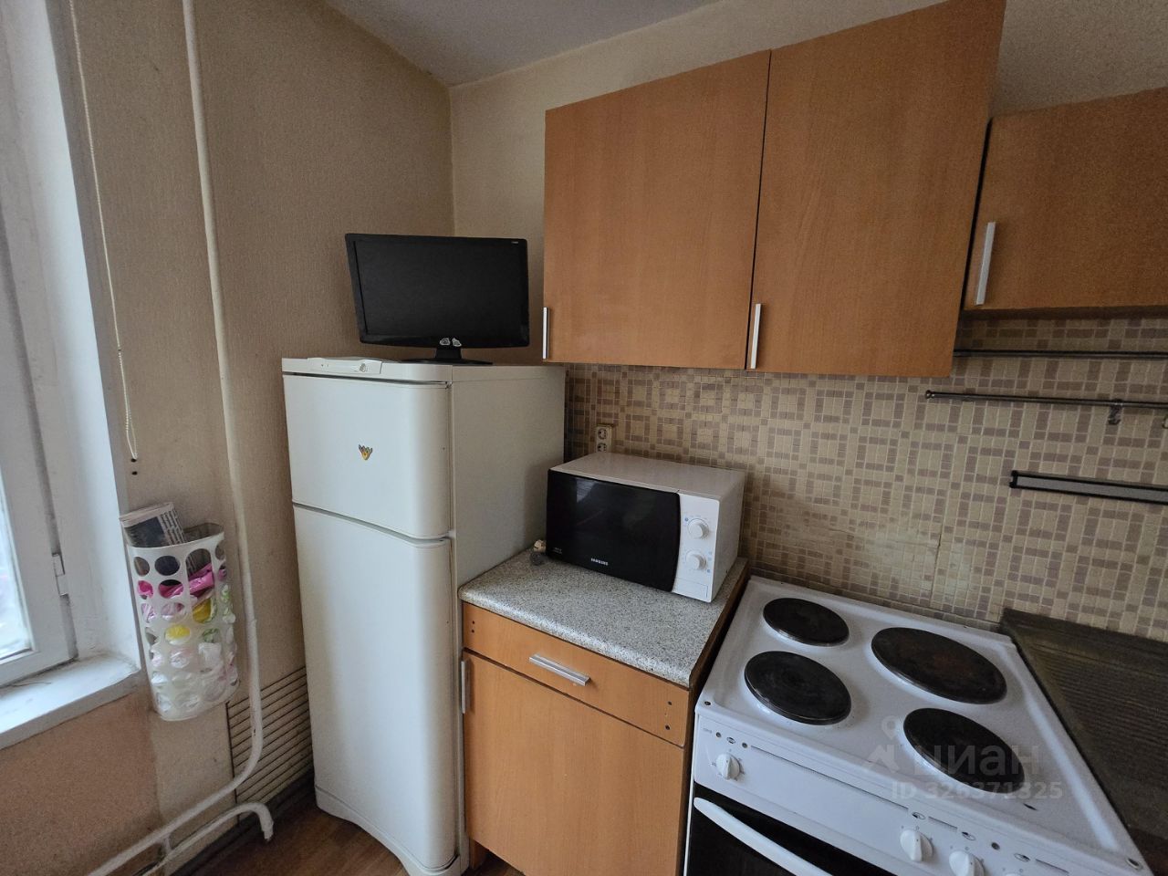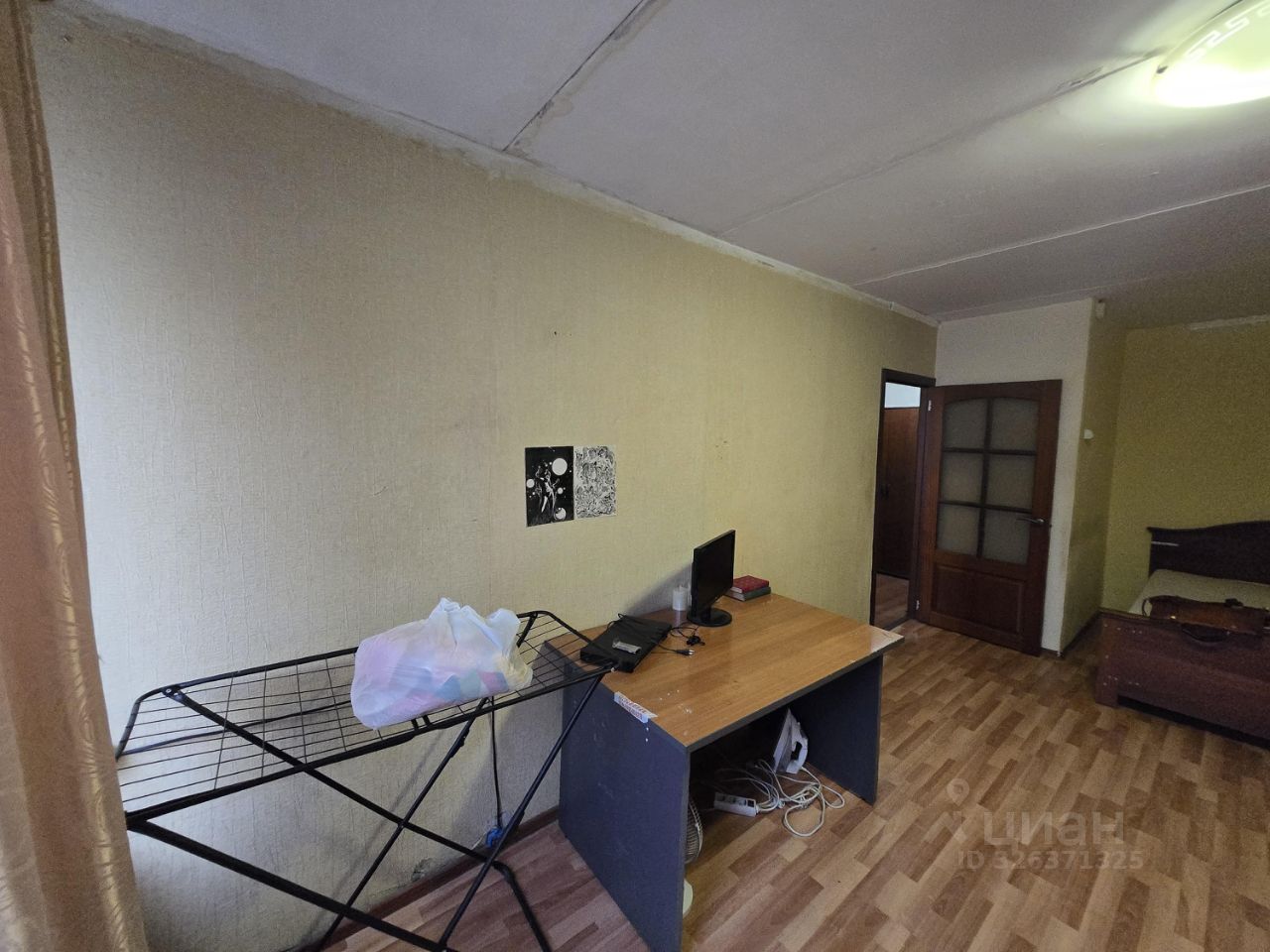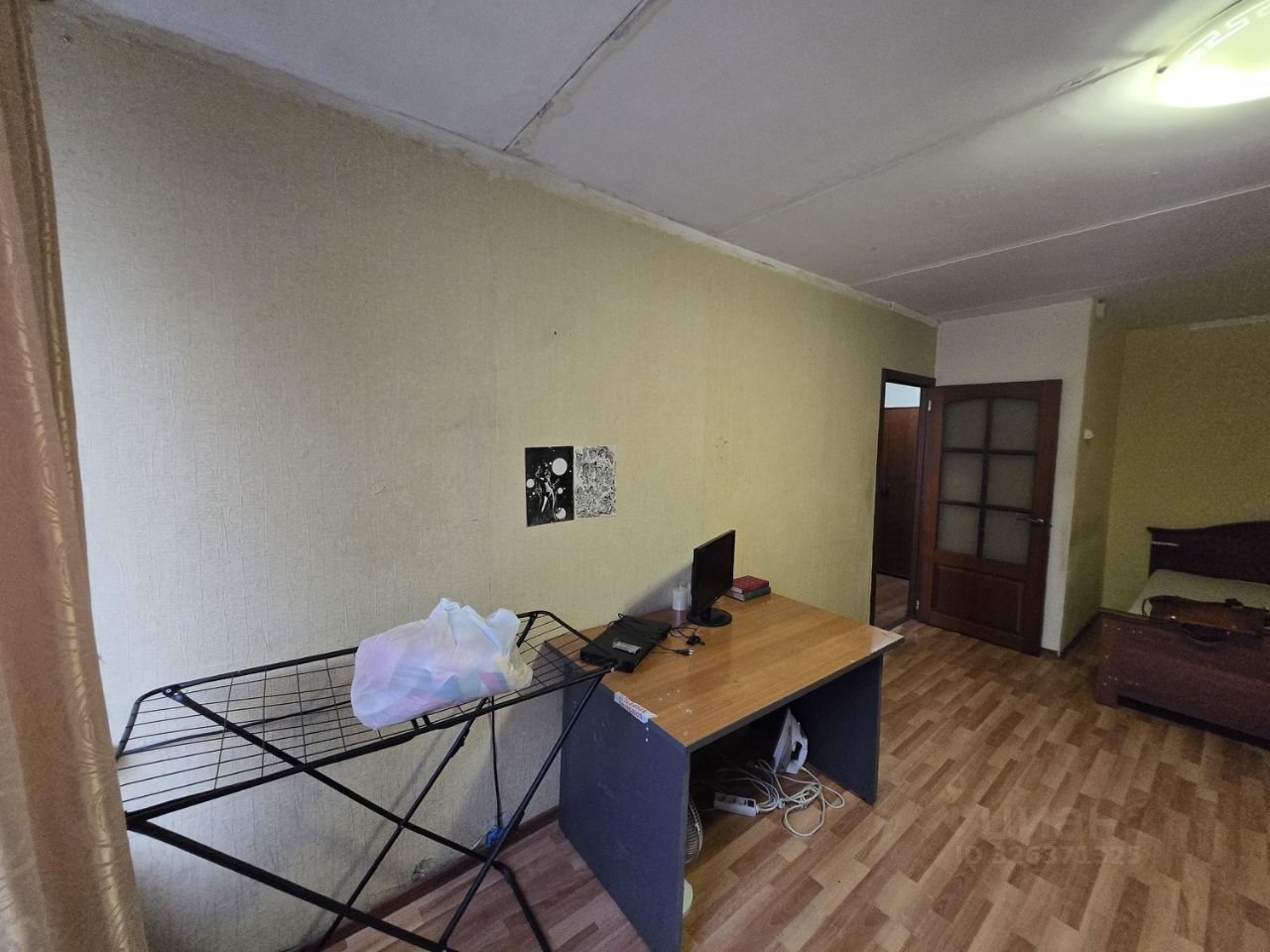 В комнате - платяной шкаф, двух-спальная полноценная кровать, письменный стол, телевизор. Балкона нет. Есть пылесос и утюг.