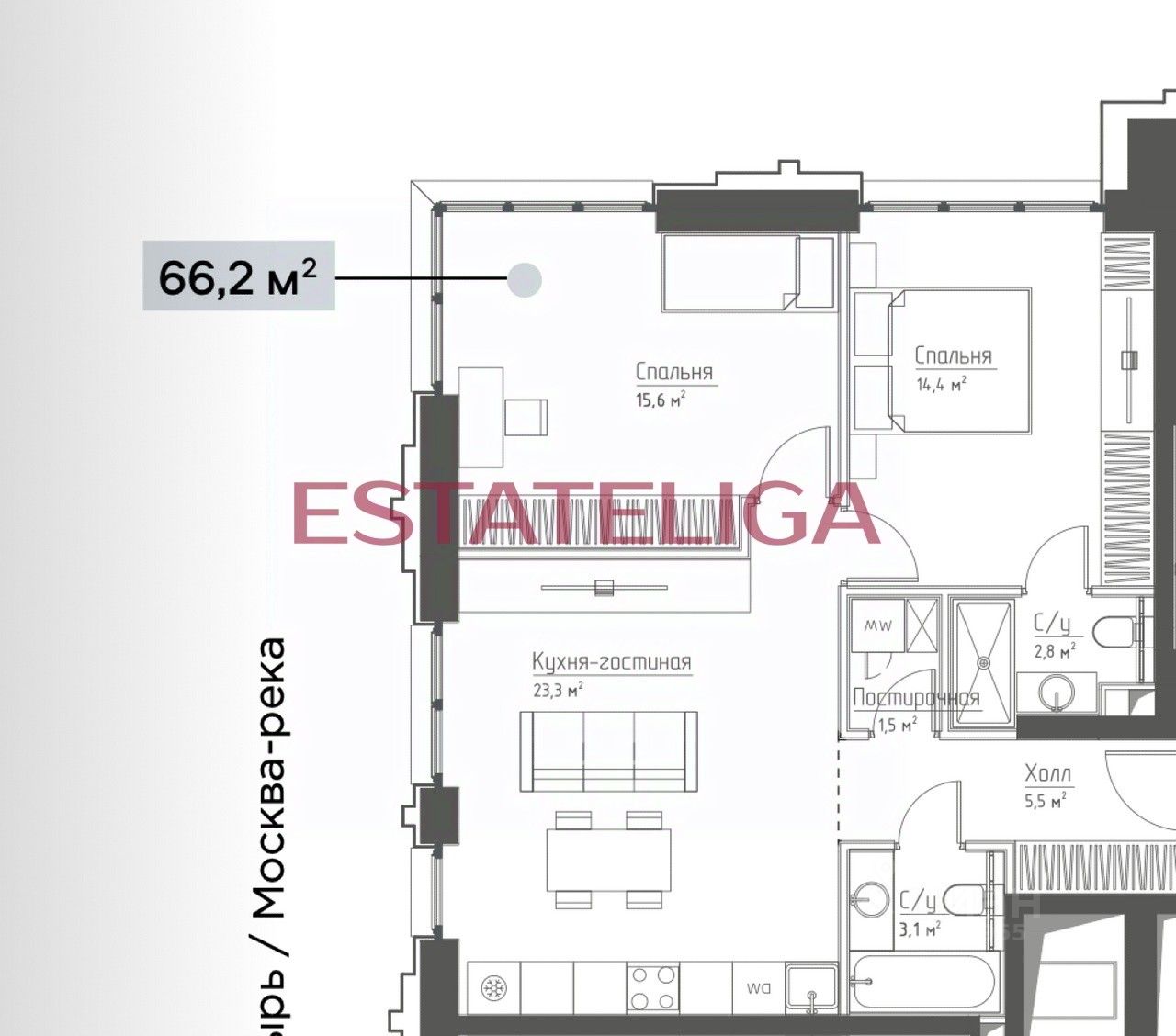Продается двухкомнатная квартира в Жилом Комплексе Бизнес-класса ''Павелецкая Сити'' Отделка от застройщика (WhiteBox). Удачная планировка.