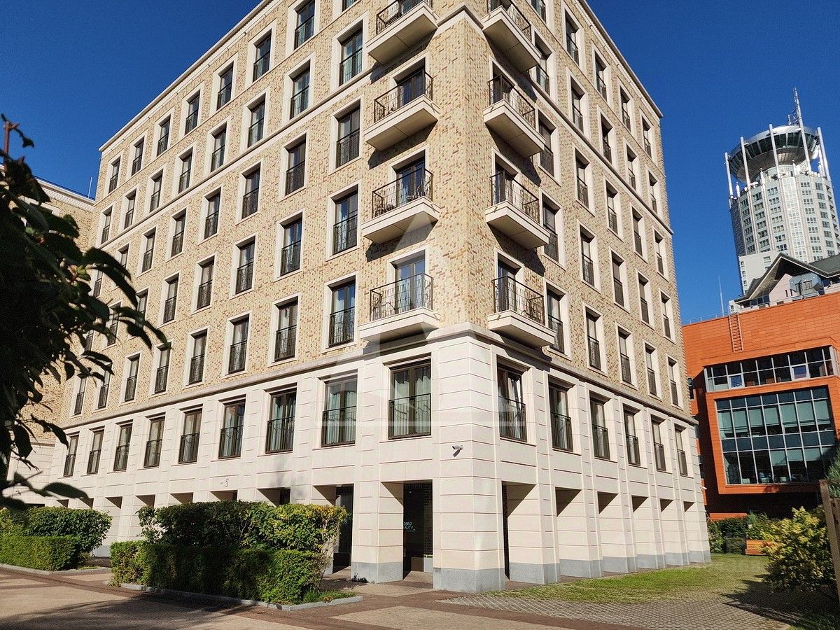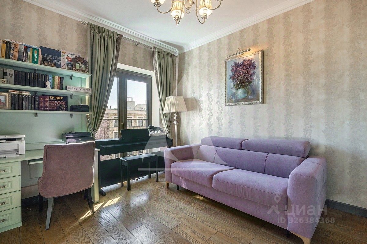 Функциональная планировка делит квартиру на две зоны. Верхний уровень - кухня-гостиная, кабинет, гостевой с/у, нижний уровень - приватное пространство - две спальни со своими с/у и гардеробными, постирочная. Французкие окна, вид из окон на дом музыки, канал, набережную и приватный зеленый двор. Центральное кондиционирование, теплые полы. В подземном паркинге предлагается одно машино-место, не входит в стоимость.