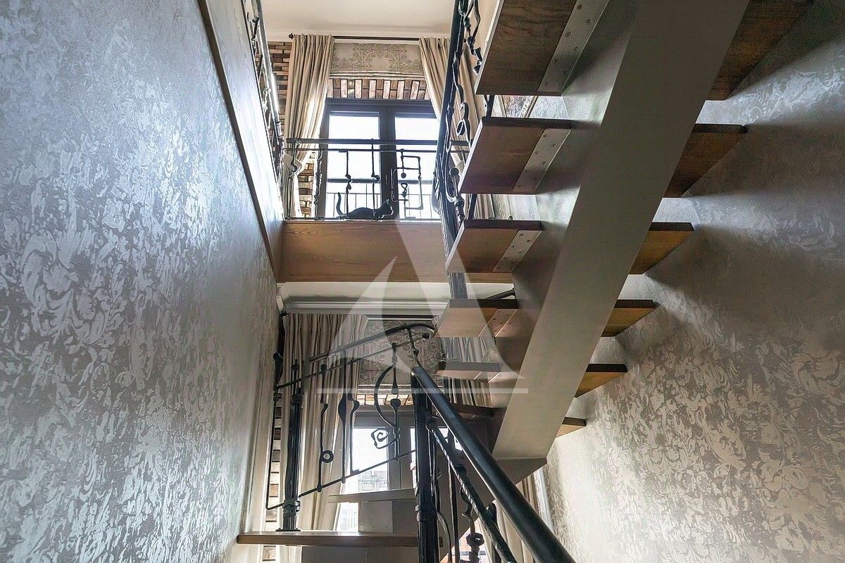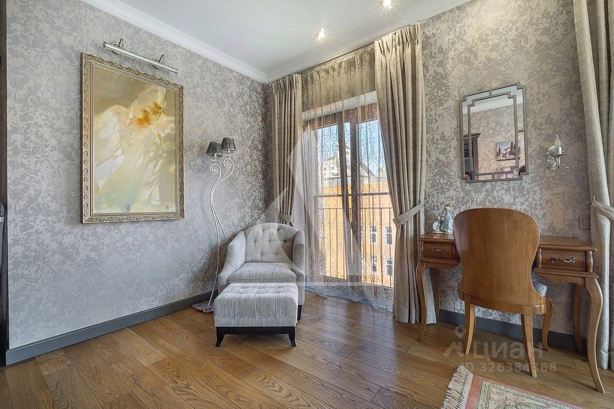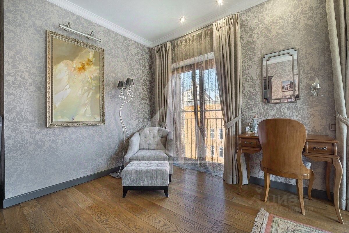 Функциональная планировка делит квартиру на две зоны. Верхний уровень - кухня-гостиная, кабинет, гостевой с/у, нижний уровень - приватное пространство - две спальни со своими с/у и гардеробными, постирочная. Французкие окна, вид из окон на дом музыки, канал, набережную и приватный зеленый двор. Центральное кондиционирование, теплые полы.