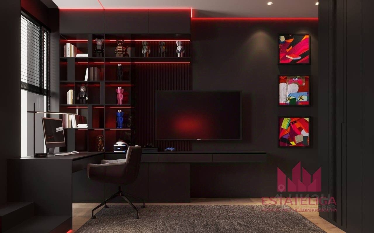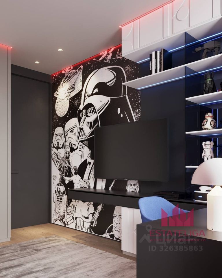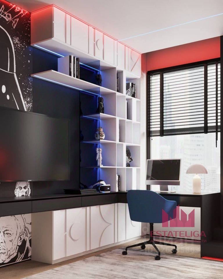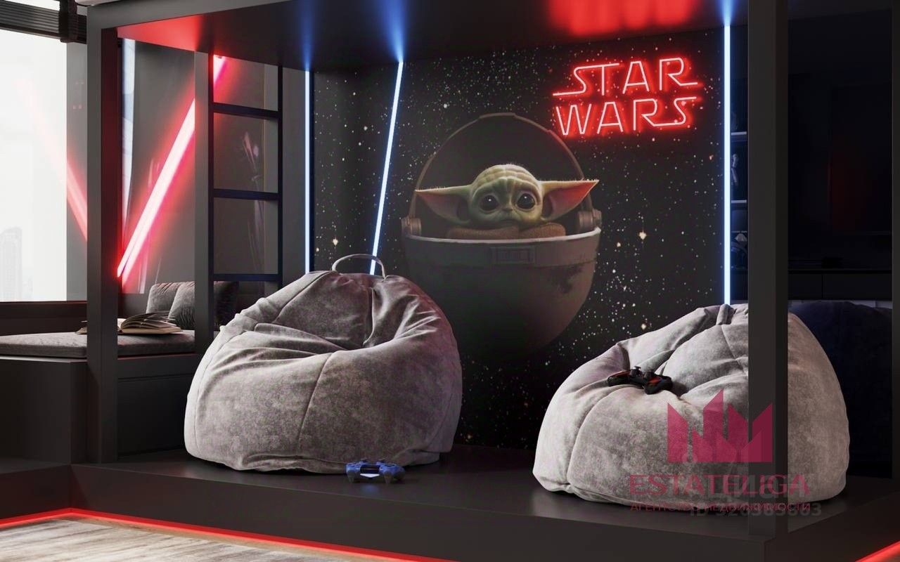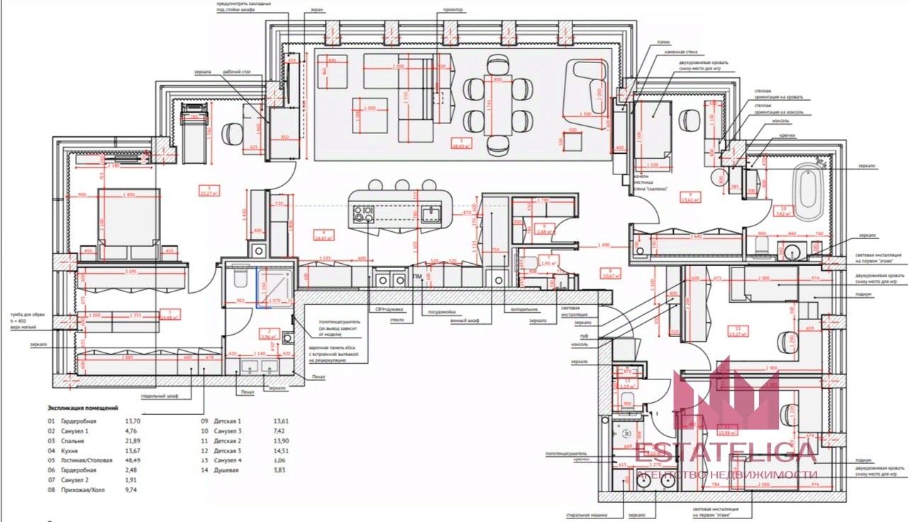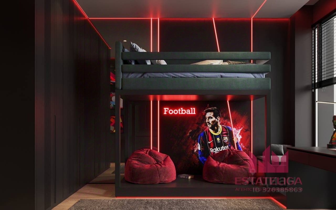 Грамотная планировка: -Мастер спальня с гардеробной и санузлом отделена от детских комнат просторной кухней гостинной 48 м.кв., кухонная зона 14 кв.м.. -Прекрасная детская для девочки с собственной ванной комнатой. -Две детские для мальчиков в стиле звездных вайнов. -Детский раздельный санузел, с собственной постирочной. -Вместительная гардеробная при входе. -Гостевой санузел.