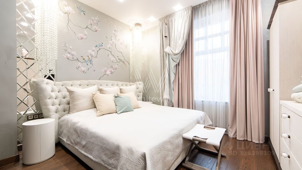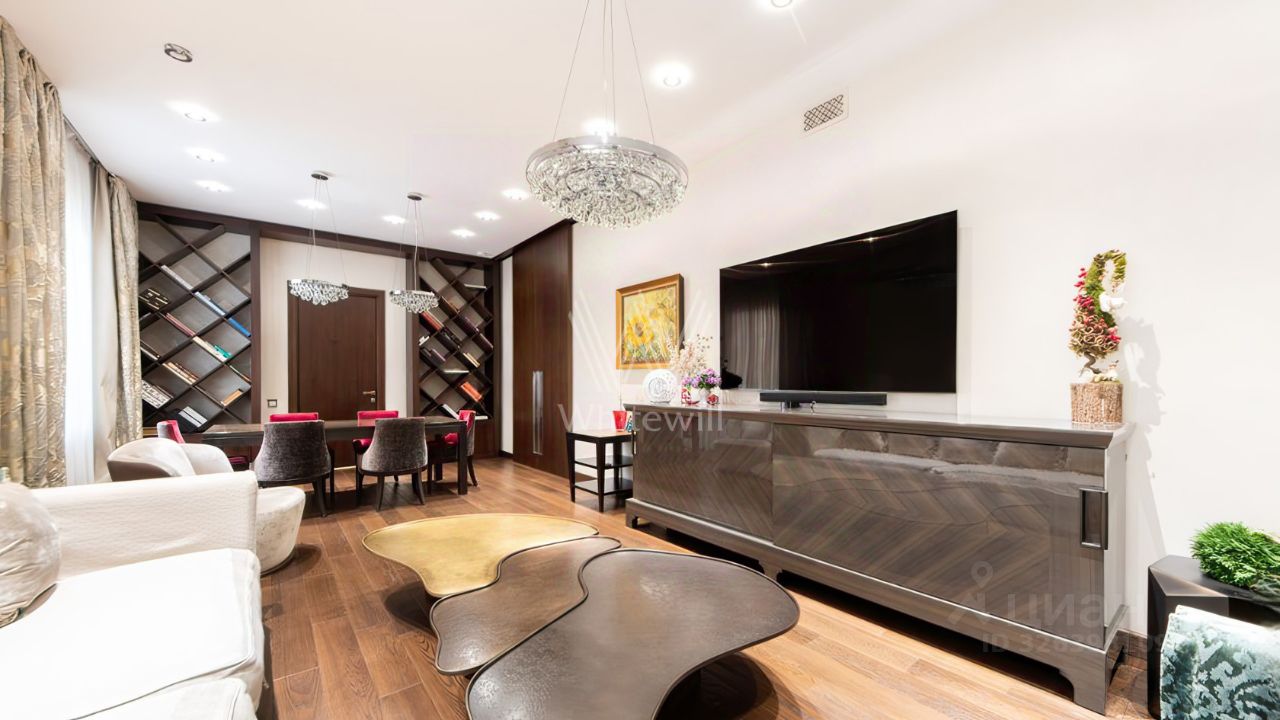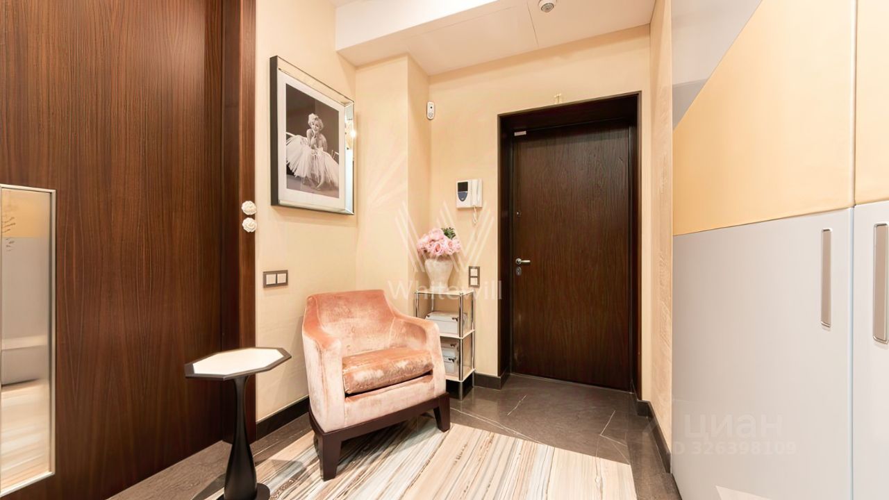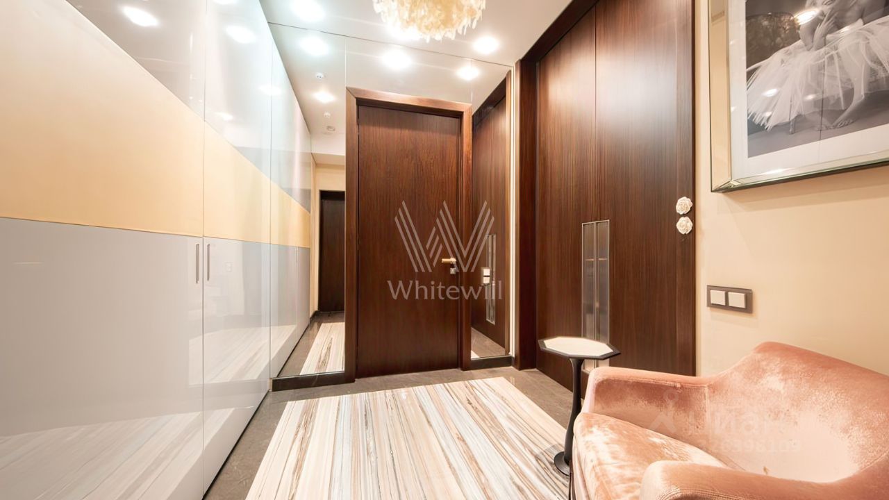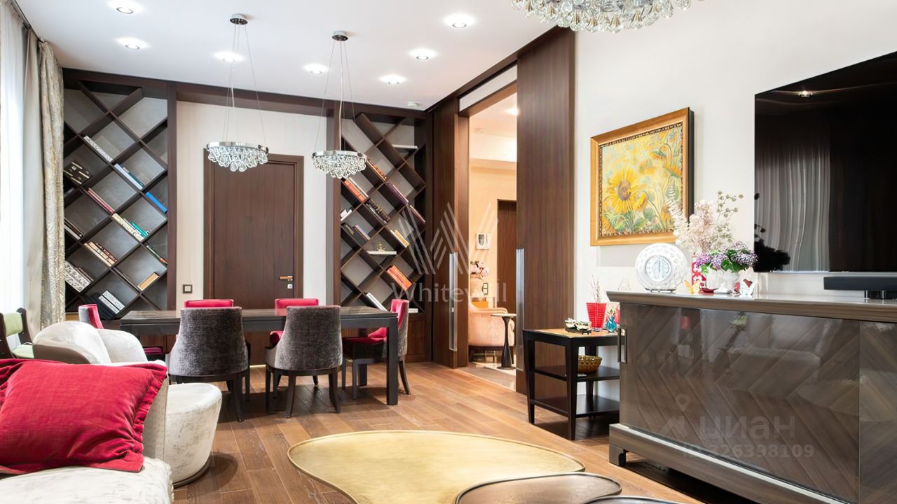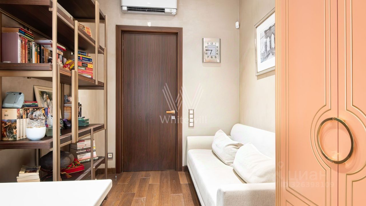 Просторная квартира с 2 спальнями общей площадью 102 м² в комплексе делюкс-класса ''Дом на Смоленской'' на 1 этаже. Интерьер оформлен в современном стиле. Квартира укомплектована мебелью и бытовой техникой Neff. Установлена система индивидуального кондиционирования.