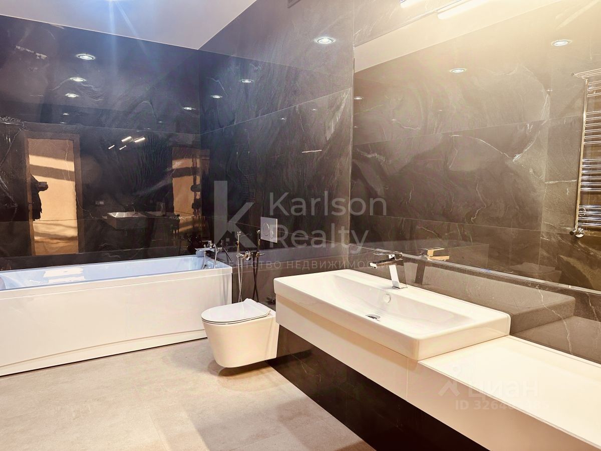 В доме выполнена отделка из дорогостоящих качественных материалов, установлены радиаторы отопления и двухкамерные стеклопакеты, газовый котел итальянского производителя BAXI мощностью 90 кВт, в доме есть гараж на 1 авто и 2 парковочных места перед домом. Кухня оснащена всей необходимой техникой - газовая плита, духовой шкаф, вытяжка, посудомоечная машина, двухкамерный холодильник. Проведен водяной теплый пол по всему первому этажу, в санузлах второго этажа и на цокольном этаже. В постирочной установлена стиральная машина, также есть сауна с комнатой отдыха, отдельный блок для персонала с отдельным входом. В доме никто не проживал после ремонта!
